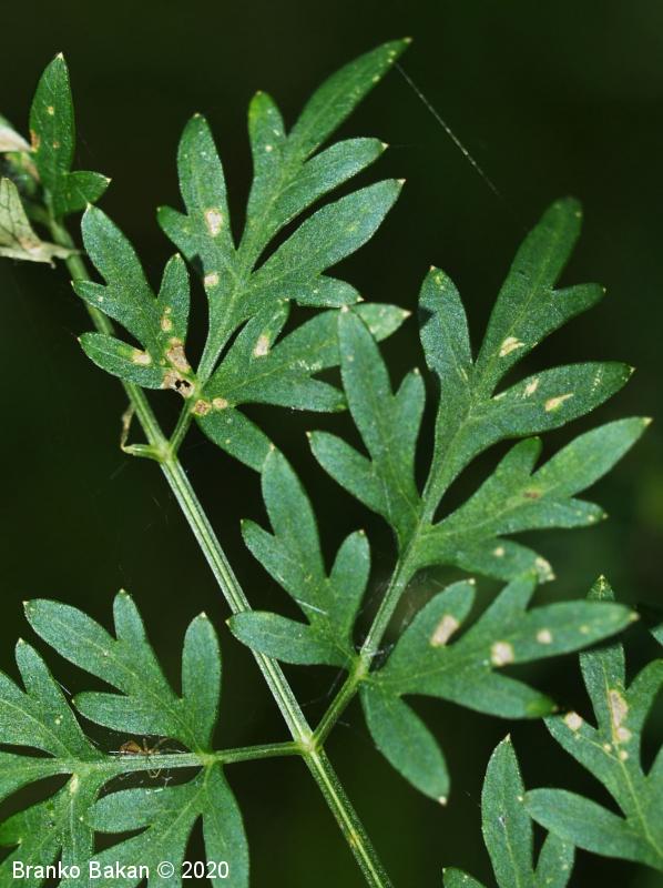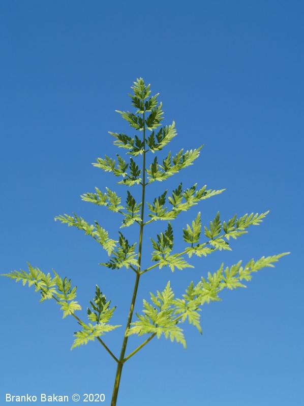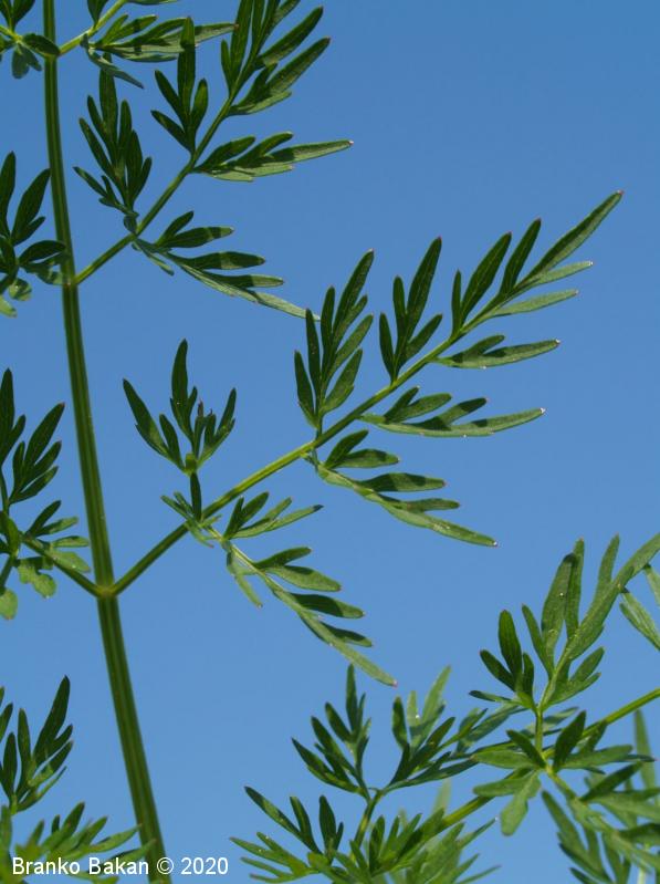Opis: pokončna trajnica. Steblo je močno izbrazdano, votlo, golo, v zgornjem delu razraslo. Listi so dolgopecljati, peclji rebrasti, brez izrazite nožnice, 3- do 4-krat pernato sestavljeni, končni segmenti so črtalasti, nacepljeni ali krpati, na vrhu koničasti (s svetlo konico!), z rahlo uvihanim robom. Cvetovi so združeni v ovršne kobule, beli. Ogrinjalo (podporni listi kobula) večlistno, lističi so šilasti, z ozkim, kožnatim robom, navzdol zavihani, ogrinjalce (podporni listi kobulčkov) je večlistno, lističi so šilasti, štrleči. Plod (karpofor) razpade na dva plodiča, ki sta izrazito rebrasta in široko krilata, gladka, 4-6 mm velika.
