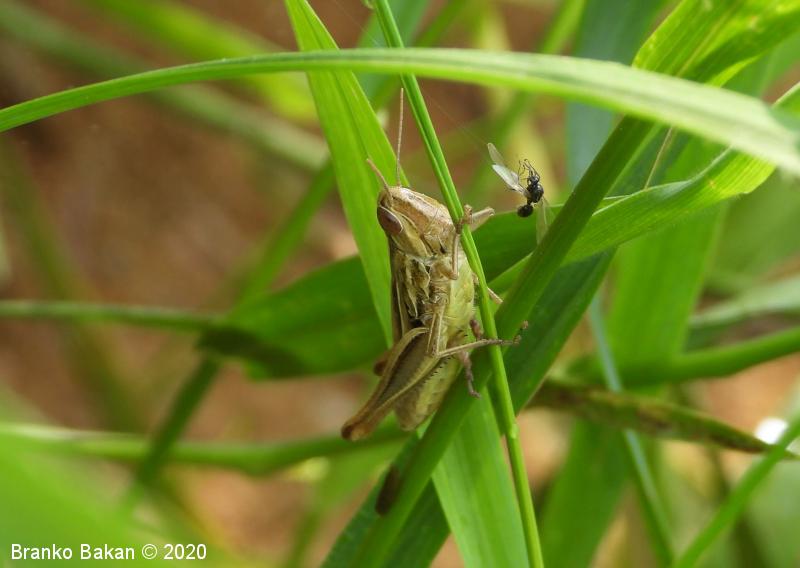 Obnašanje in razvoj: dokaj pogosta, toploljubna vrsta, ki se pojavlja od julija do oktobra predvsem na suhih in sončnih traviščih. Tako odrasli osebki, kot tudi ličinke (nimfe) se v glavnem hranijo z bilkami trav (Poaceae). Cvrčanje je segmentirano v dokaj kratke, enakomerno zaporedne in enako dolge odseke.