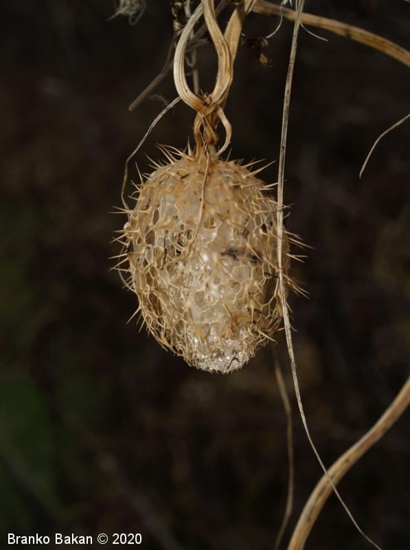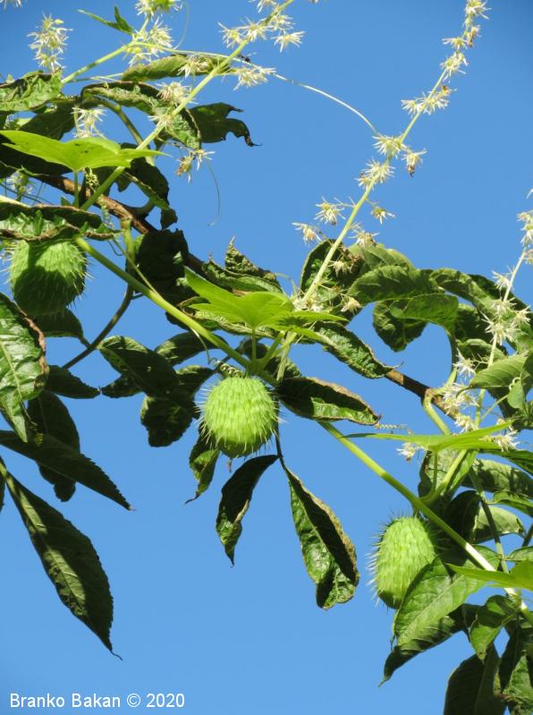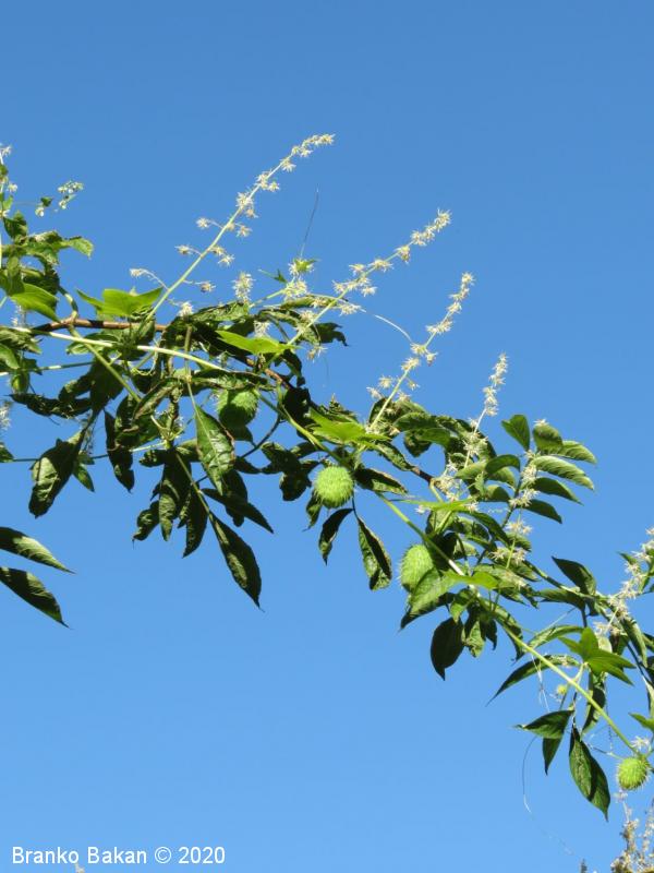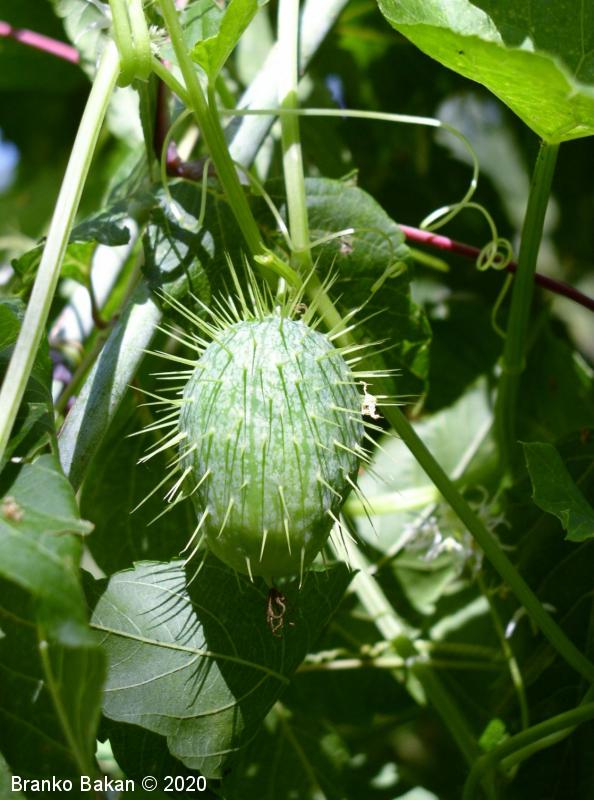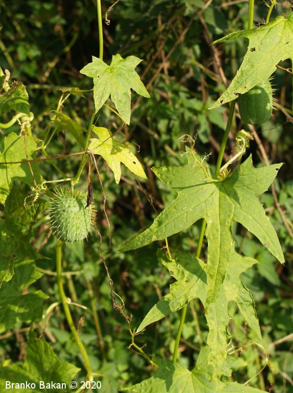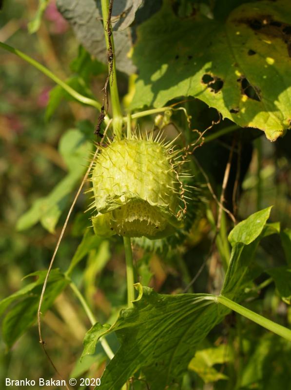 Opis: zelnata enoletna vzpenjalka s trodelnimi viticami. Listi so nasprotno razvrščeni (en je preobražen v vitico), dolgopecljati, široko dlanasto krpati (krpe trikotne), srhkodlakavi. Cvetovi so enospolni, zvezdasto razprti, moški cvetovi so beli, združeni v pokončna, latasta socvetja, dehteči, ženski cvetovi so posamični, v zalistjih, sprva kratkopecljati, s podraslo, ščetinasto plodnico. Plod je jajčast, mesnat, porasel s togimi ščetinami, dolgopecljat, ob zrelosti propade, ohrani se le mrežasta žilna struktura s semeni.