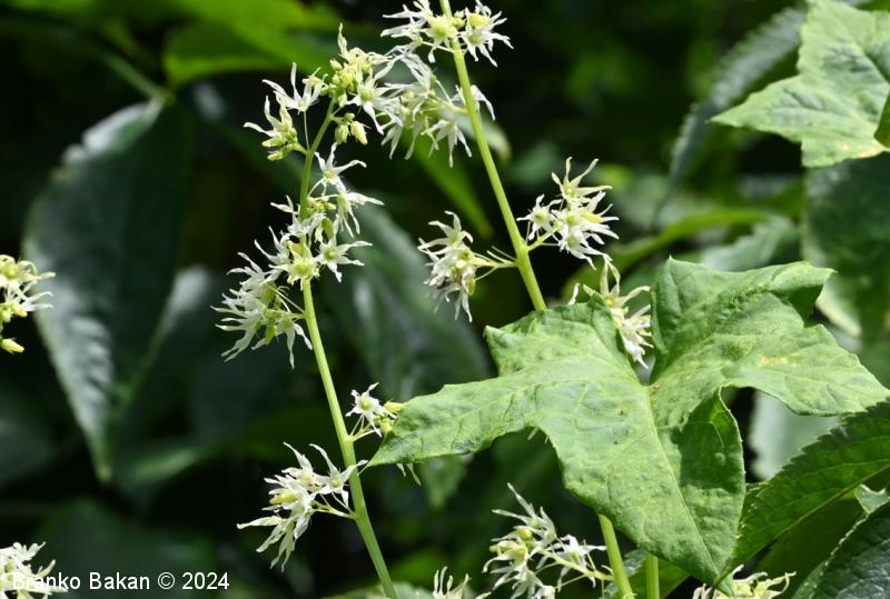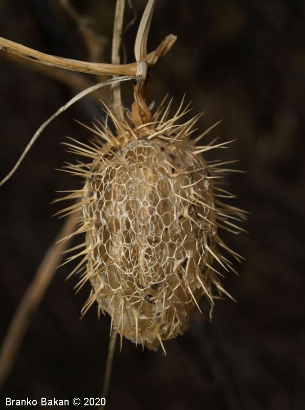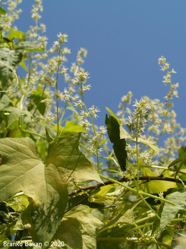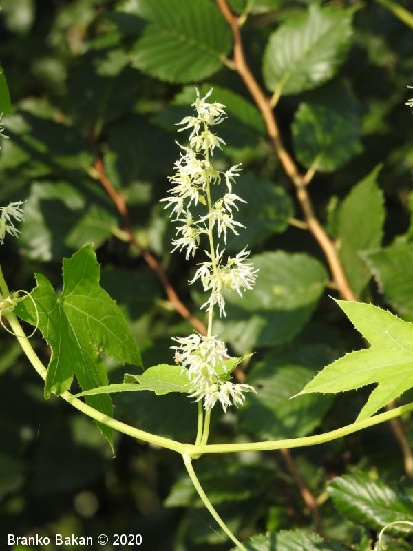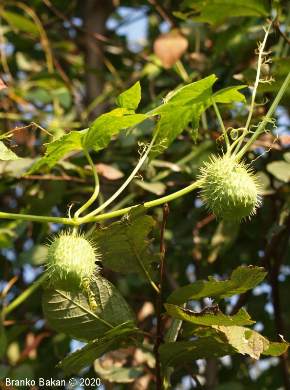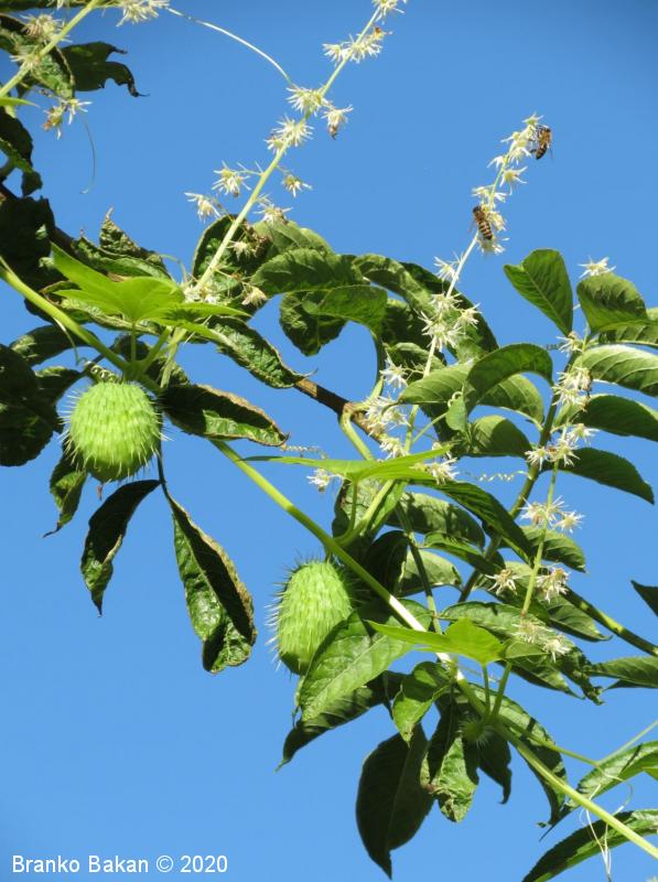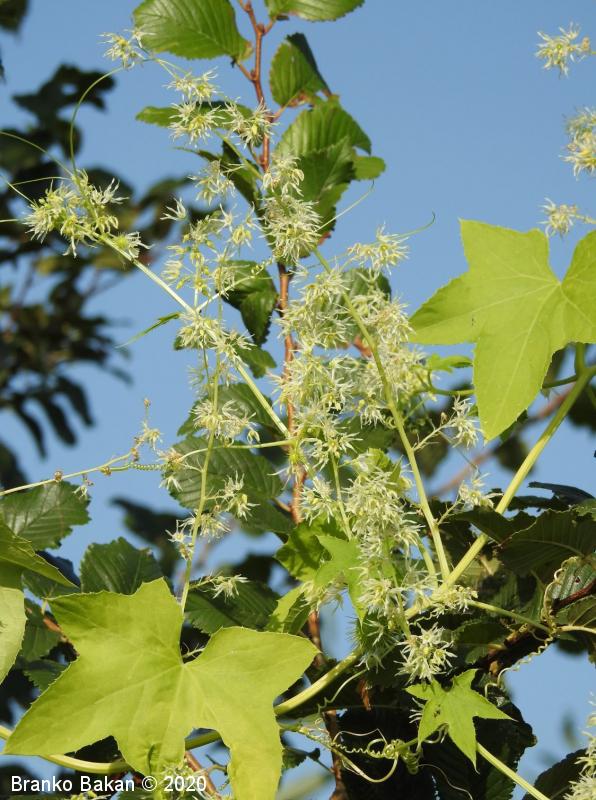 Opis: zelnata enoletna vzpenjalka s trodelnimi viticami. Listi so nasprotno razvrščeni (en je preobražen v vitico), dolgopecljati, široko dlanasto krpati (krpe trikotne), srhkodlakavi. Cvetovi so enospolni, zvezdasto razprti, moški cvetovi so beli, združeni v pokončna, latasta socvetja, dehteči, ženski cvetovi so posamični, v zalistjih, sprva kratkopecljati, s podraslo, ščetinasto plodnico. Plod je jajčast, mesnat, porasel s togimi ščetinami, dolgopecljat, ob zrelosti propade, ohrani se le mrežasta žilna struktura s semeni.