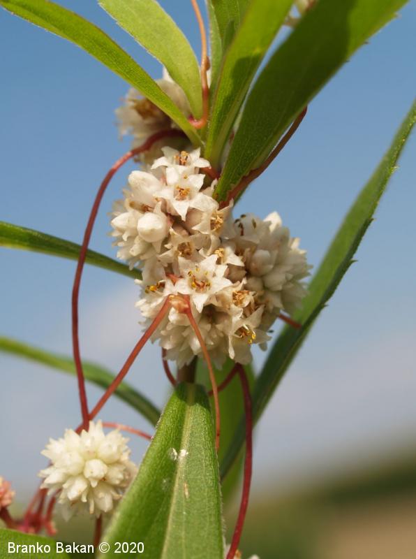 Opis: plazeča, močno razrasla enoletnica s tankim, rdečkastim ali belkastim, ovijajočim se steblom. Pravi listi manjkajo, na steblu so razviti le drobni luskolisti. Cvetovi so drobni, zgoščeni v klobčasta, 7-10 mm velika, gostocvetna, obstranska socvetja, beli ali rožnati, blagodehteči, zvonasti. Venčni listi so med seboj zrasli, med vsakim parom je po en prašnik, na bazi venca z notranje strani se nahajajo nacefrane goltne luske, ki zapirajo vhod v venčno cev. Plodnica je nadrasla, z dvema vratovoma, ki sta daljša od nje in imata vsak na vrhu nitasto brazdo. Plod je glavica, ki se odpira z loputami.