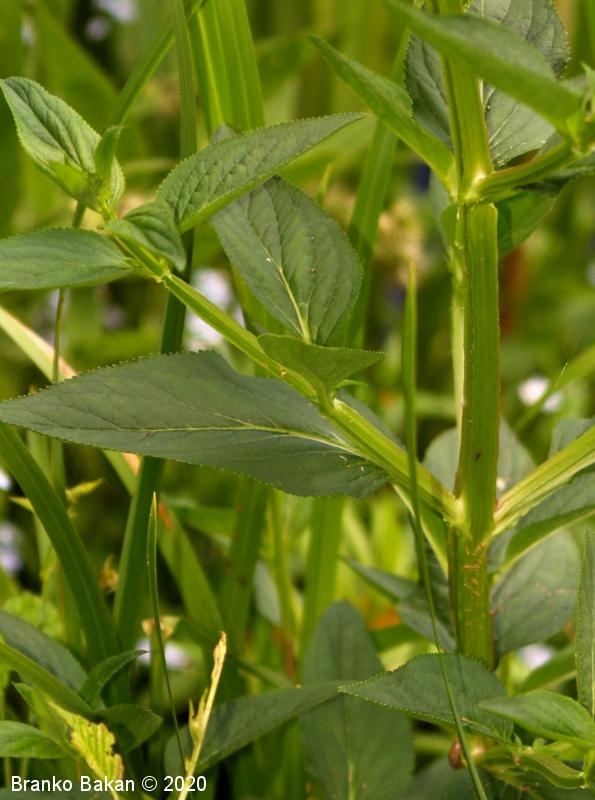 Opis: pokončna, razrasla trajnica z golim, ostro krilatim in štirirobim steblom ter krepko, plazečo koreniko. Listi so jajčasti do suličasti, nasprotno razvrščeni, spodnji pecljati, zgornji sedeči, po robu ostro (podvrsta umbrosa) ali topo nazobčani (podvrsta neesii), bleščeči, goli. Cvetovi so razmeroma drobni, skoraj v celoti rdečerjavi (podvrsta umbrosa) ali vsaj po hrbtu zeleni (podvrsta neesii), somerni, čašasti, združeni v ovršna in obstranska, latasto razrasla socvetja. Plod je glavica.