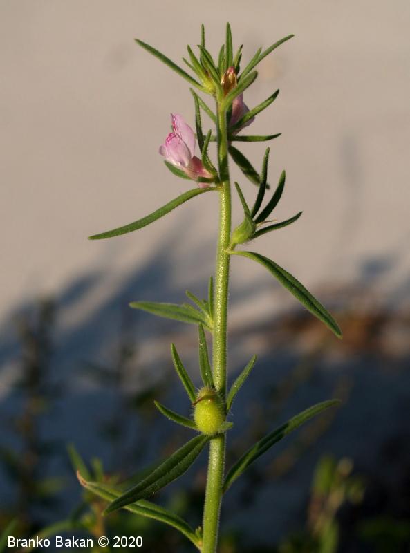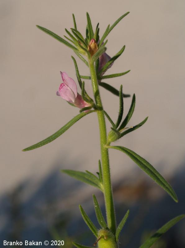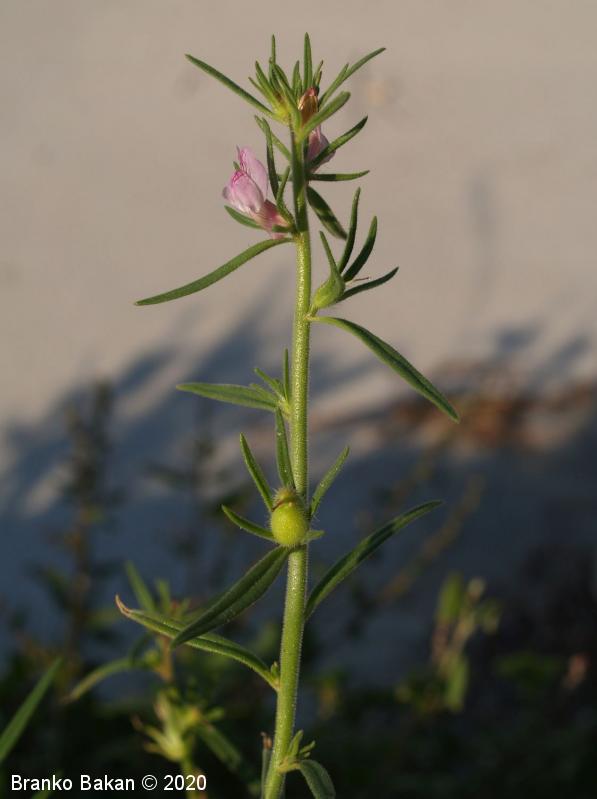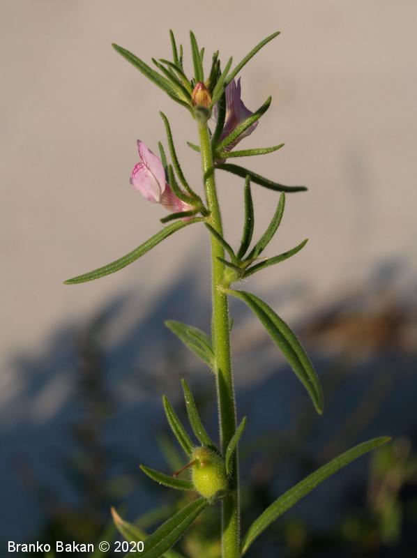 Opis: pokončna, nerazrasla, žlezastodlakava enoletnica. Listi so črtalasti do ozkosuličasti, nasprotno razvrščeni (zgornji listi pogosto premenjalni), celorobi, enostavni, dlakavi, pri vrhu koničasti, enožilnati. Cvetovi so somerni, dvoustnati, rožnati s temnejšimi žilami, 8-12 mm veliki, posamični v zalistjih ali v malocvetnih socvetjih. Venčni listi so v spodnjem delu med seboj zrasli v venčno cev, spodnja ustna je trokrpa, zapira vhod v venec. Čašni listi so ozkočrtalasti, večinoma daljši od venca, štrlečedlakavi. Plod je jajčasta, kratkodlakava glavica.