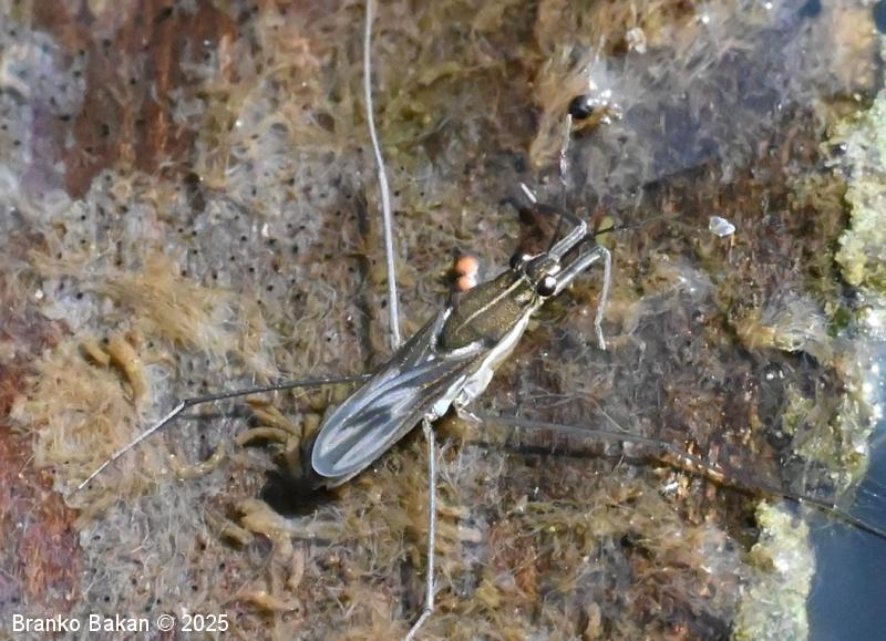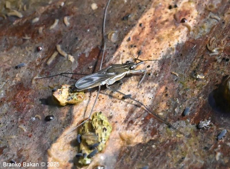 Obnašanje in razvoj: vrsta se pojavlja večinoma na večjih, odprtih stoječih vodah. Tako ličinke (nimfe) kot odrasli osebki so plenilci majhnih nevretenčarjev, ki jih polovijo na vodni gladini. Na stopalcih imajo številne dlačice, ki omogočajo drsenje po vodni površini, z njimi tudi zaznavajo vibracije na vodi. Zelo redko odletijo, razen ko iščejo primeren habitat. Odrasli so aktivni od maja do oktobra.