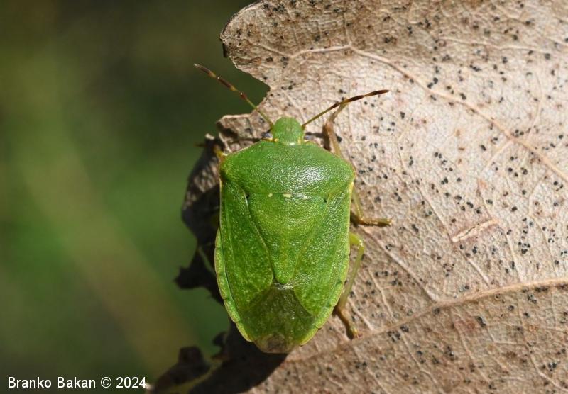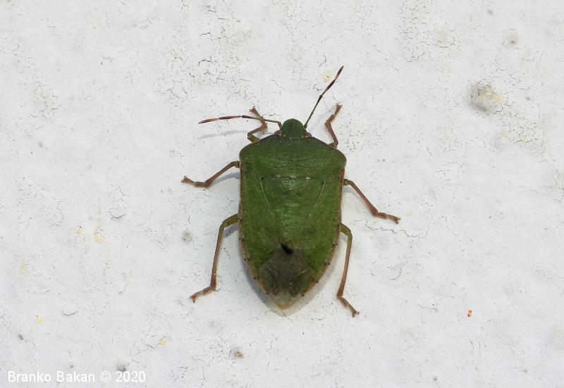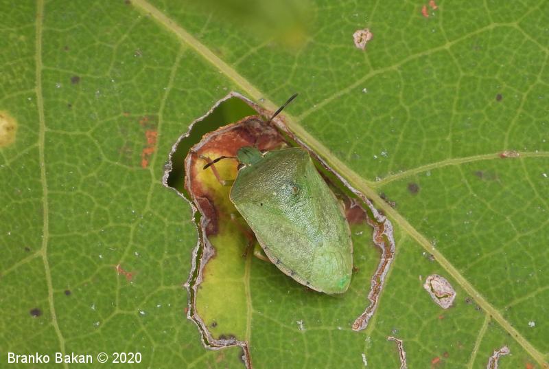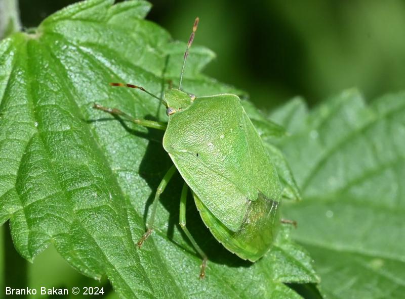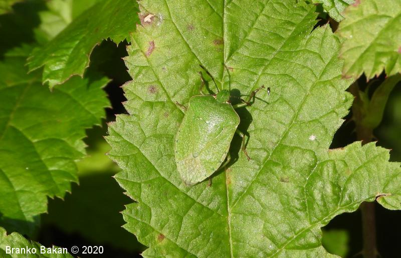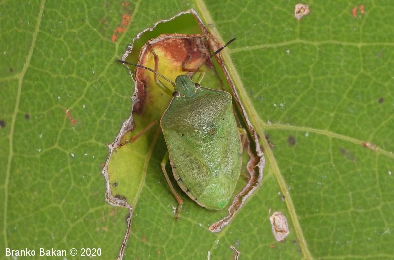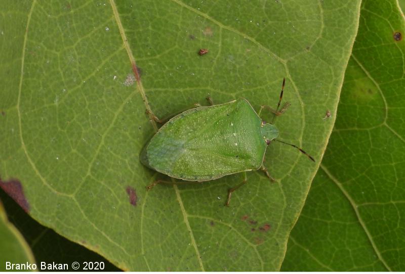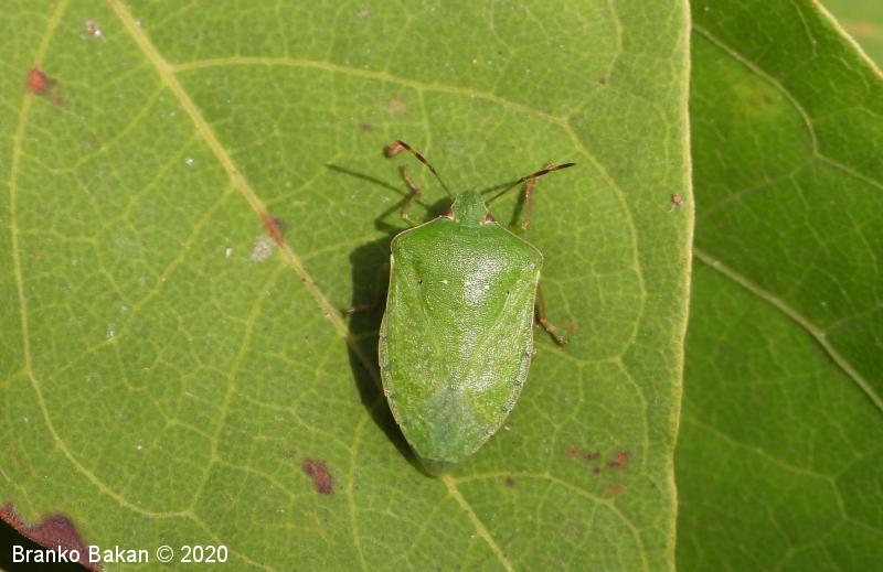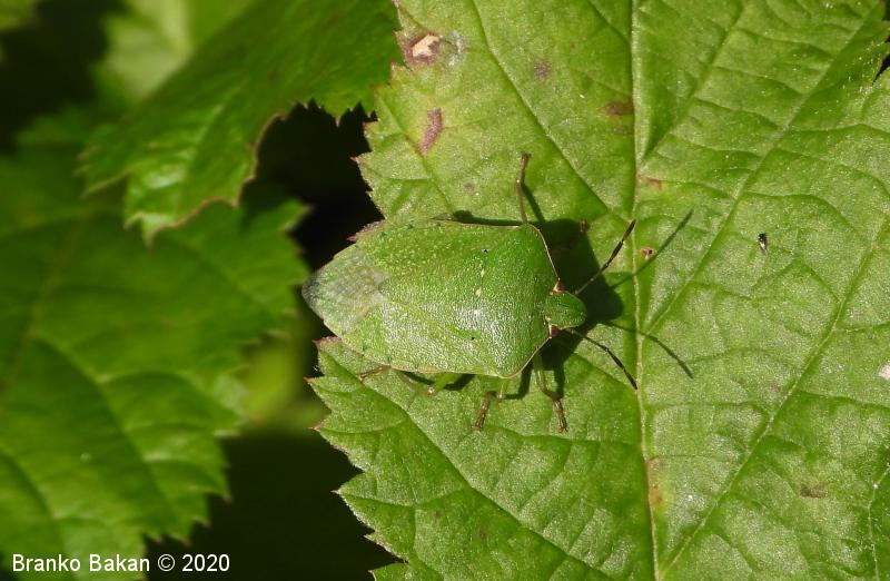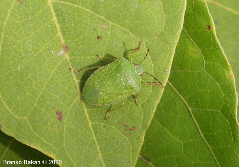 Podobne vrste: zelena listna stenica (Palomena prasina) - brinjeva ščitasta stenica (Chlorochroa juniperina).