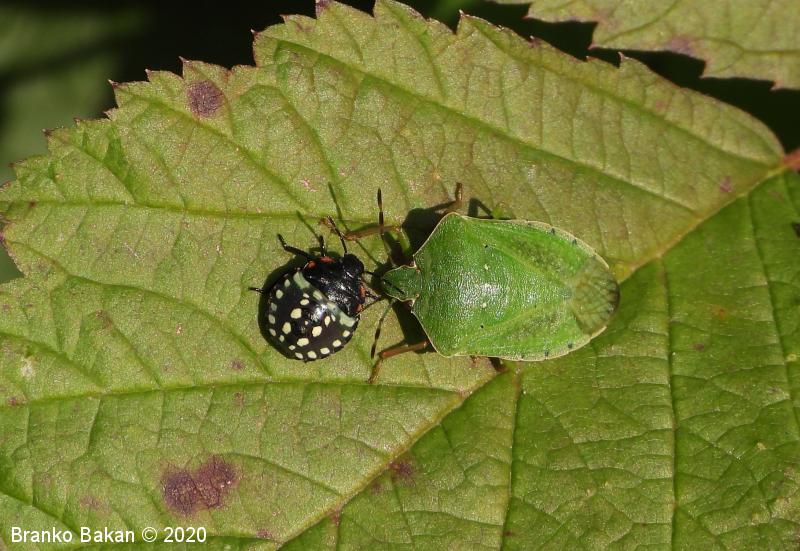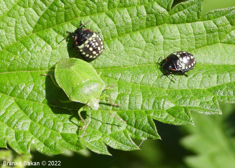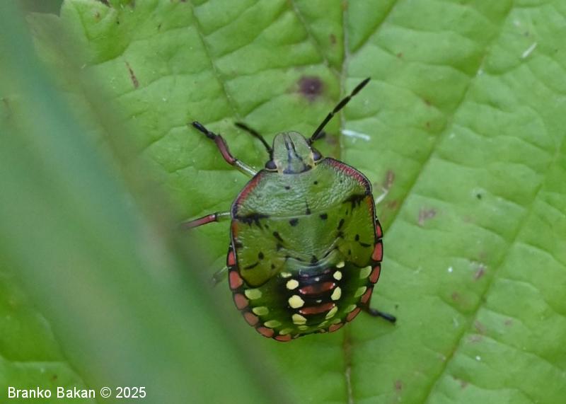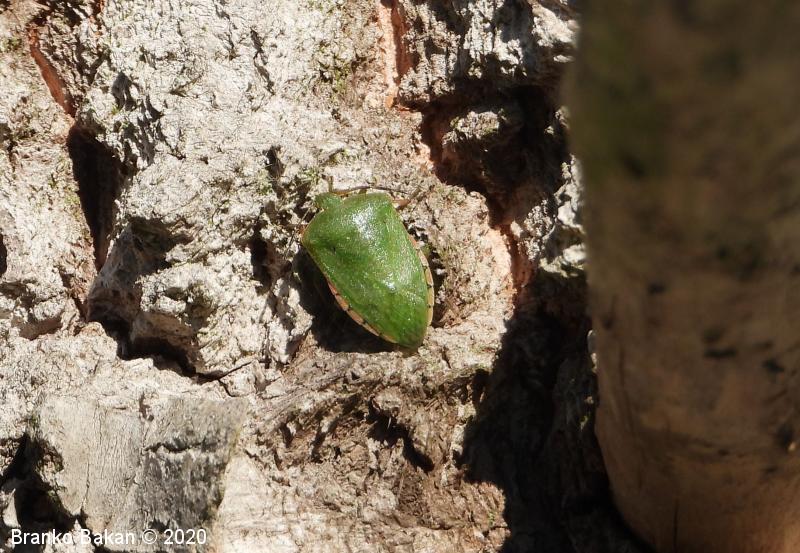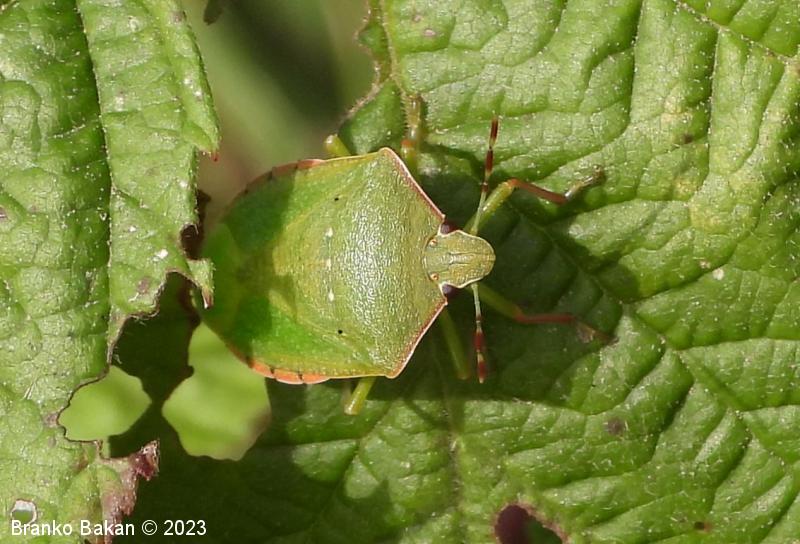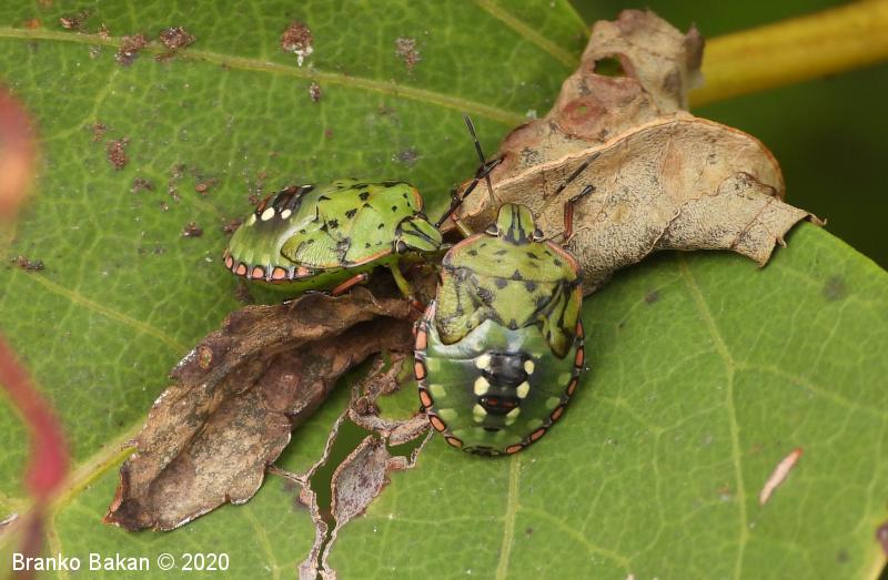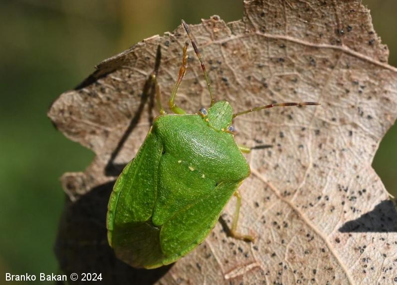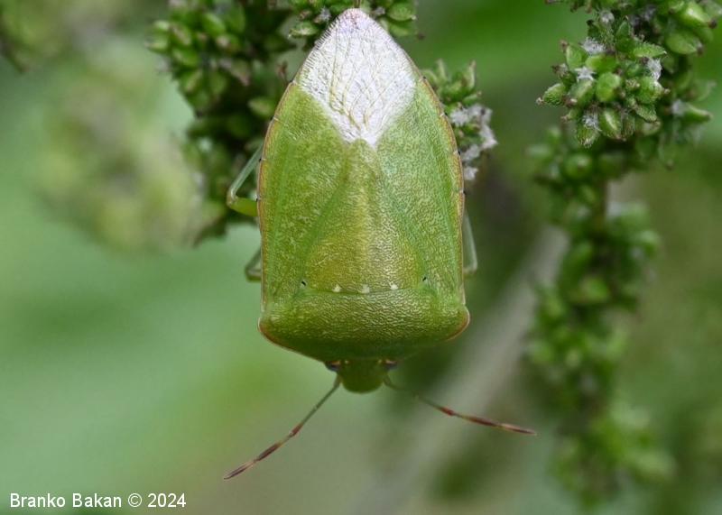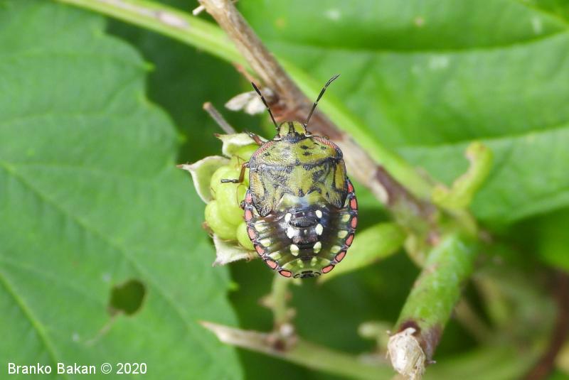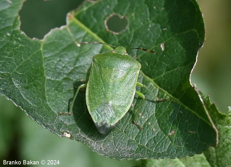 Podobne vrste: zelena listna stenica (Palomena prasina) - brinjeva ščitasta stenica (Chlorochroa juniperina).