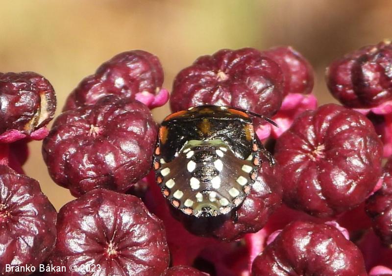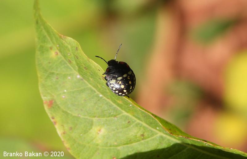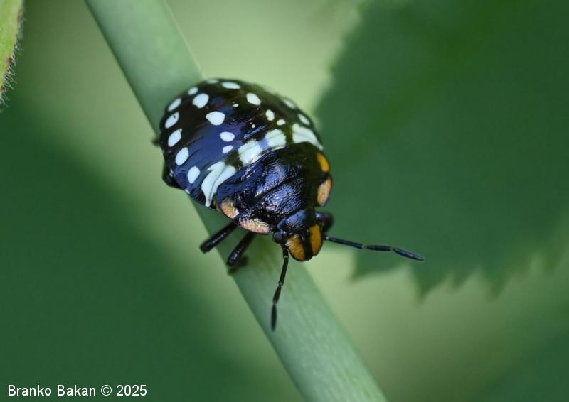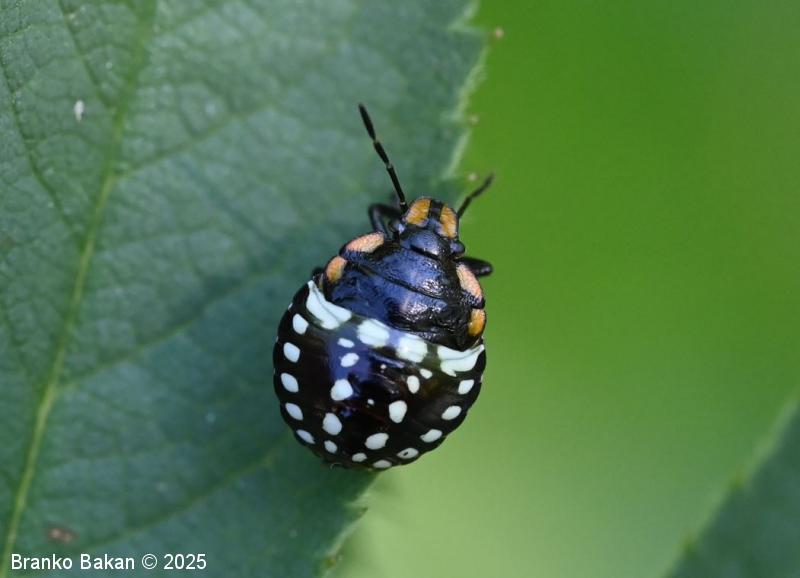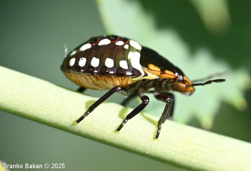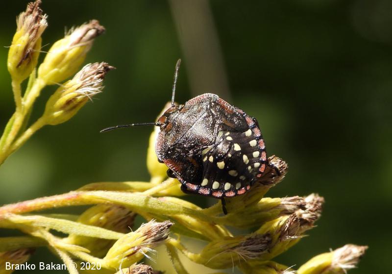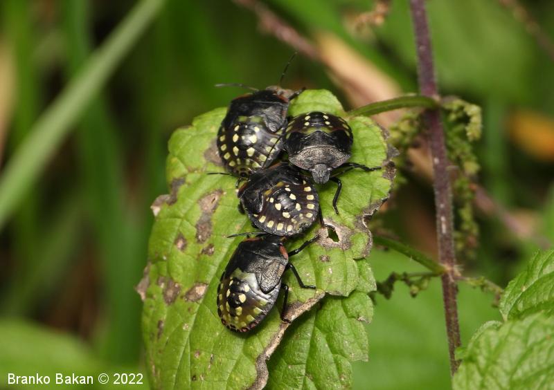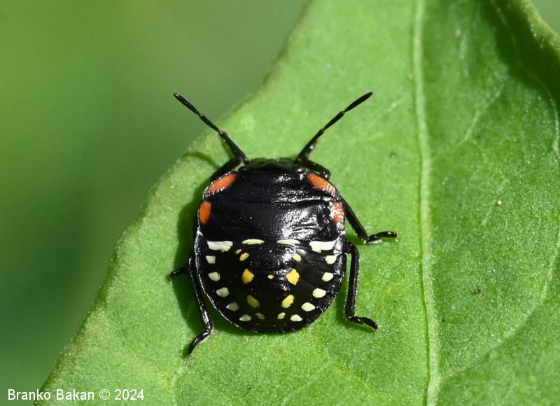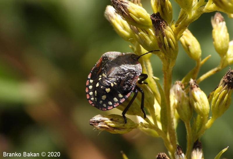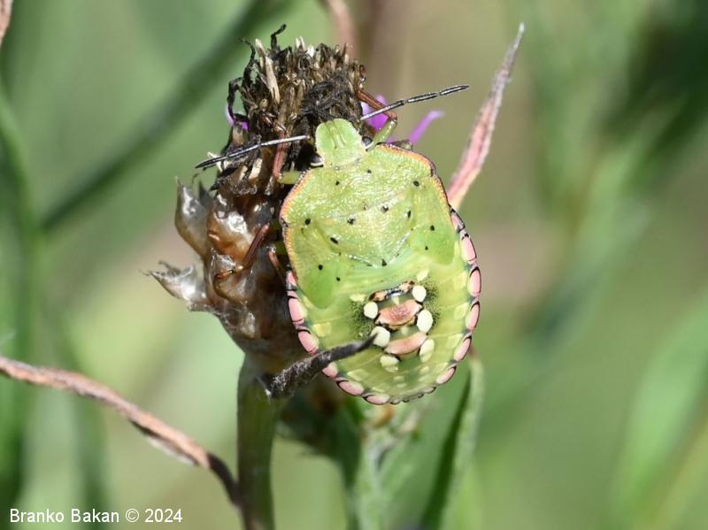 Podobne vrste: zelena listna stenica (Palomena prasina) - brinjeva ščitasta stenica (Chlorochroa juniperina).