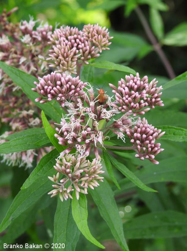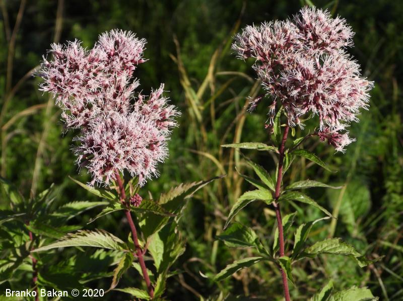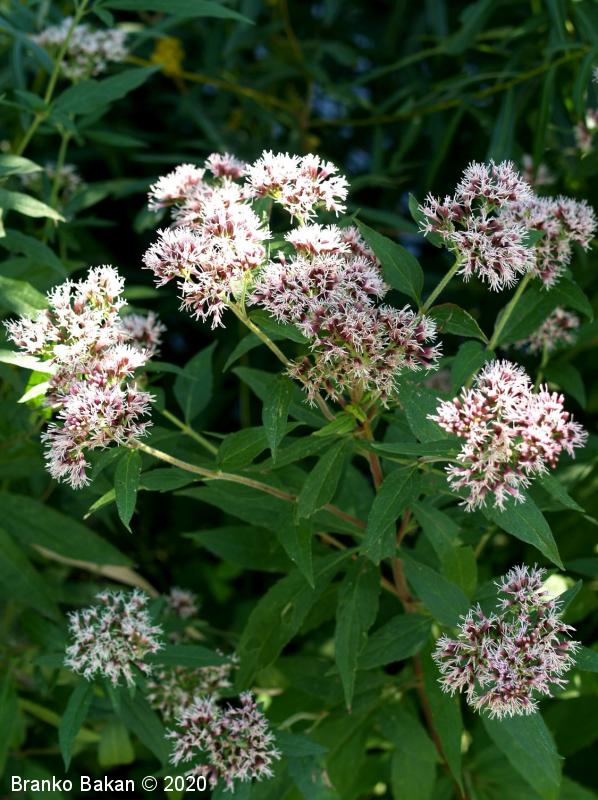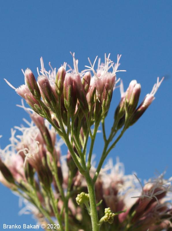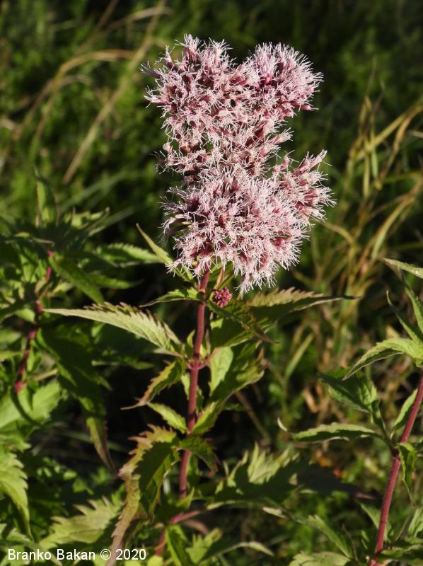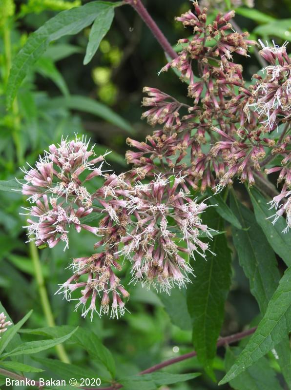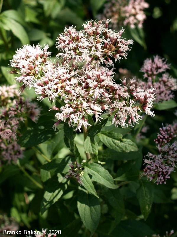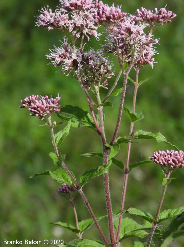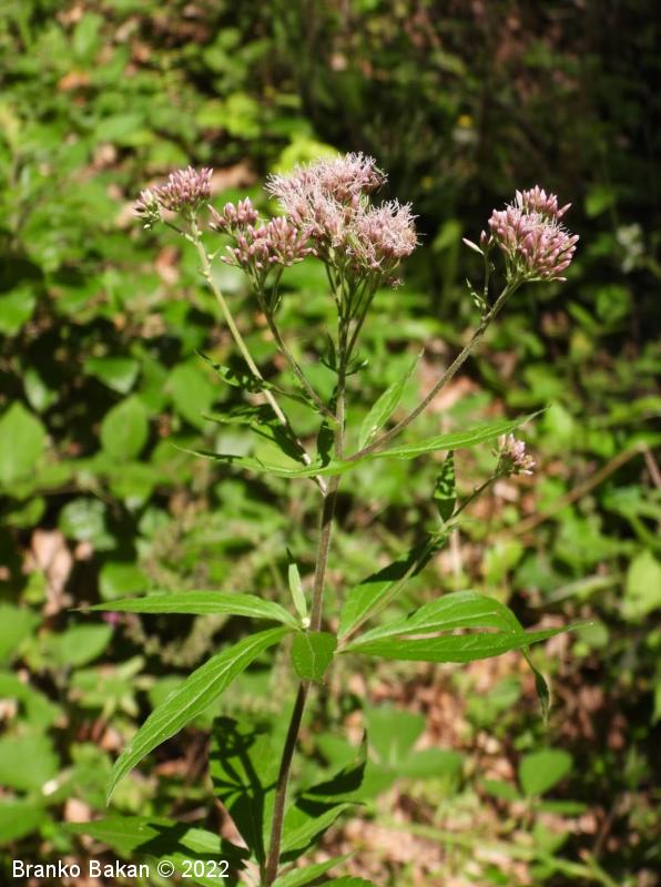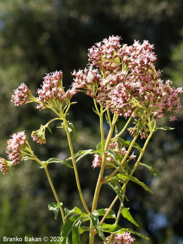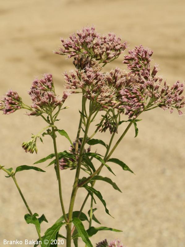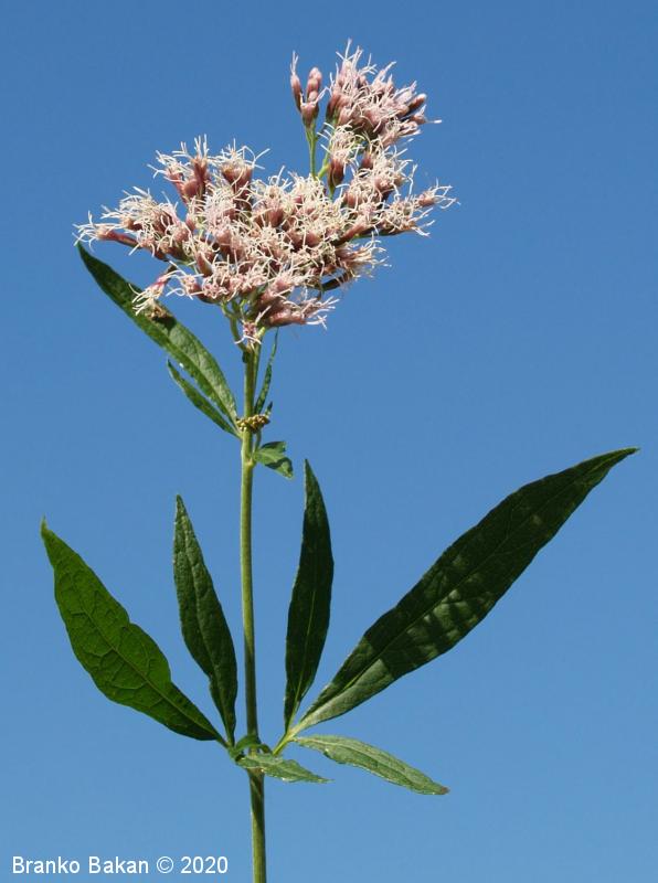 Opis: precej visoka, pokončna in v zgornjem delu razrasla trajnica s plazečo, podzemno koreniko. Steblo je okroglo, kratkodlakavo, večinoma rdečkasto. Spodnji in osrednji stebelni listi so nasprotno razvrščeni, kratkopecljati, trojnato do peternato deljeni v suličaste segmente, ki so po robu nazobčani, zgornji listi so večinoma enostavni. Koški (socvetja) so drobni, ozkovaljasti, zgoščeni v navidezno kobulasta, ovršna socvetja, obdajajo jih luskasti ovojkovi listi. Koški so sestavljeni iz majhnega števila cevastih, mesnato rožnatih ali svetlo škrlatnih (lahko tudi belih), blagodehtečih cvetov. Zrel plod je orešek (rožka), ki ima na vrhu šop pernatih laskov (kodeljica, preobraženi čašni listi).