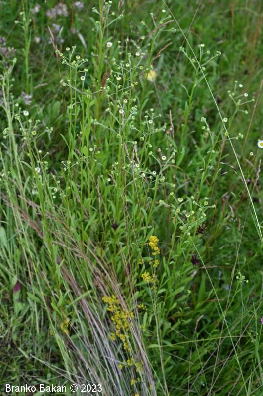 Opis: zelo je podobna navadni suholetnici (Erigeron annuus), od katere pa se loči po sledečih znakih: steblo je večinoma nerazraslo, le v cvetni regiji s šibastimi, pogosto lokastimi, stranskimi poganjki, ki nosijo po 2-5 koškov - steblo je v srednjem in zgornjem delu prileglodlakavo (pri navadni suholetnici je skoraj v celoti štrlečedlakavo) - listi so večinoma celorobi, ozki.