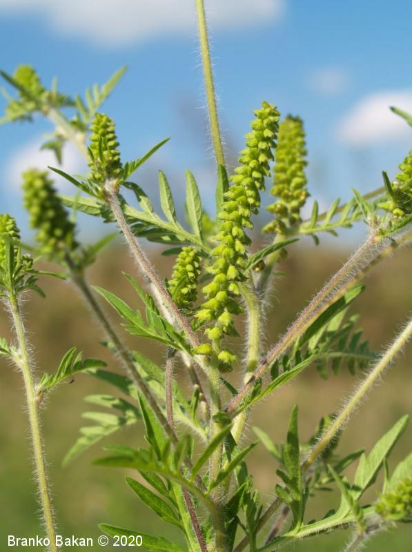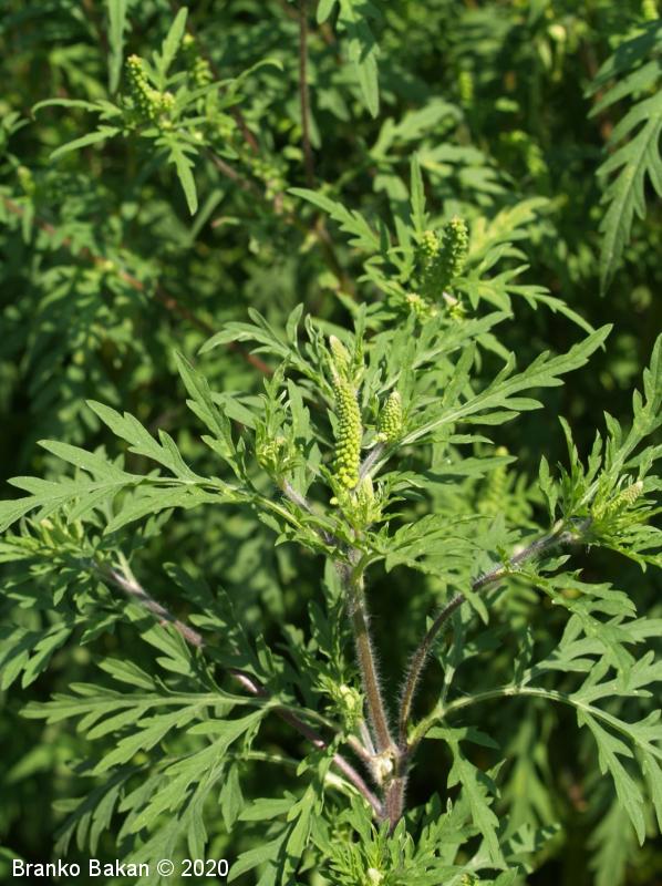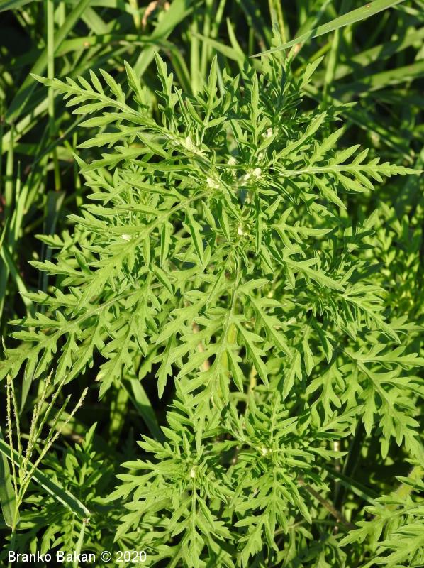 Posebnosti: ambrozija velja za eno najbolj invazivnih in tudi za eno najbolj alergenih rastlin (pelod raznaša veter). Rastlina se je po 2. sv. vojni razširila iz S. Amerike, sprva s ptičjo hrano, kasneje posredno s transportom semen koruze, pšenice in drugih žitnic. Po zakonu jo morajo lastniki zemljišč aktivno zatirati in preprečevati njeno širjenje, kar pa je jalovo početje, saj so semena zelo trpežna, proizvede pa jih na tisoče. Celotna rastlina ima močan aromatičen vonj.