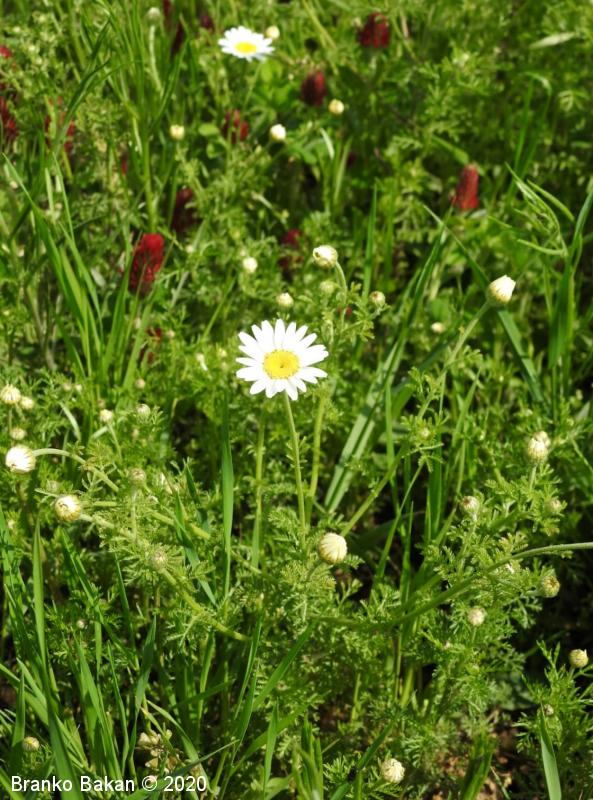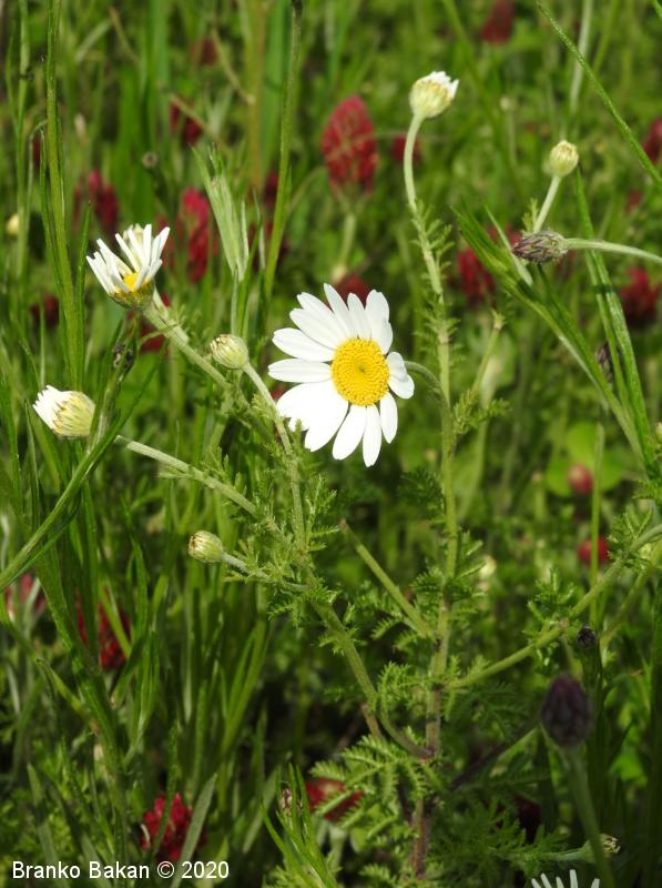 Podobne vrste: njivska pasja kamilica (Anthemis arvensis) - smrdljiva pasja kamilica (Anthemis cotula).