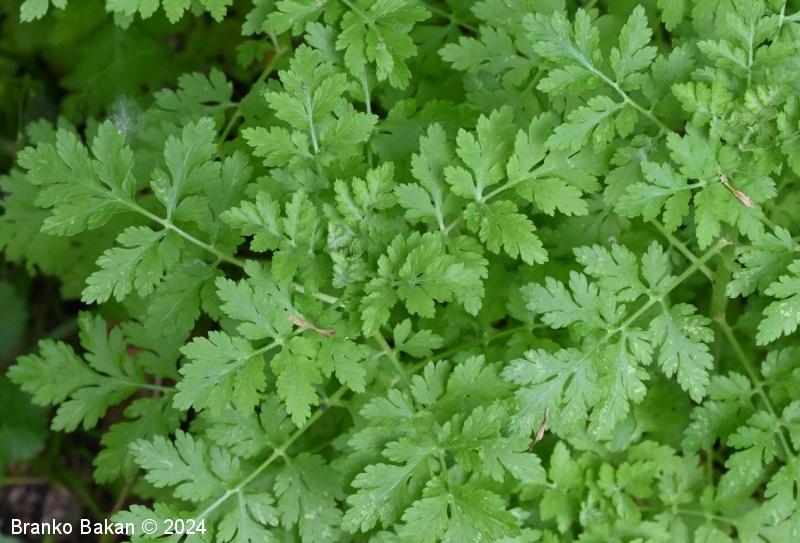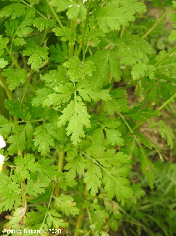 Opis: pokončna, razvejana, precej aromatična, kratko ščetinastodlakava trajnica. Listi so v obrisu suličasti, ploski, 2- do 3-krat pernato deljeni v široke, nacepljene ali nazobčane roglje, modrikastozeleni, dolgopecljati, premenjalno razvrščeni. Koški so večinoma posamični, združeni v rarasla ovršna socvetja, 15-20 mm široki, sestavljeni iz belih jezičastih (zunanji) in rumenih cevastih (notranji) cvetov. Jezičasti cvetovi so lahko precej kratki ali pomnoženi. Plod je orešek (rožka), brez kodeljice (reducirana čaša).