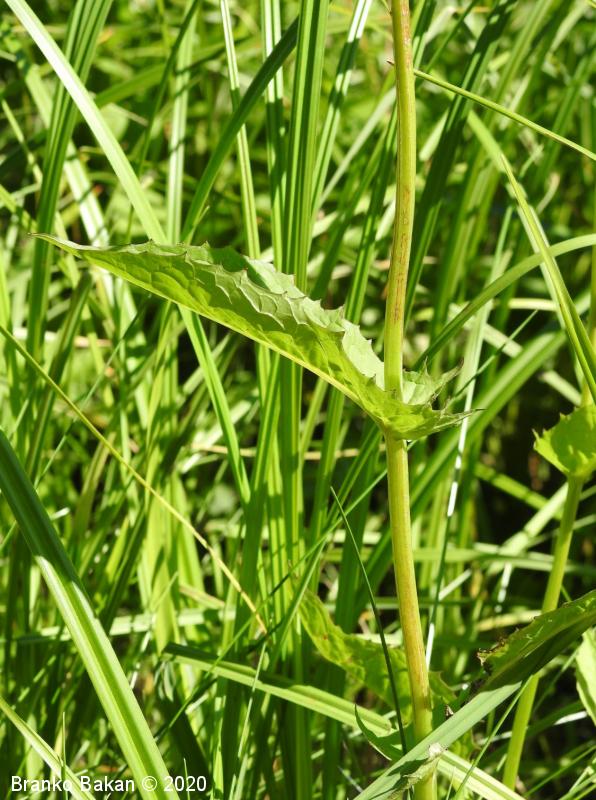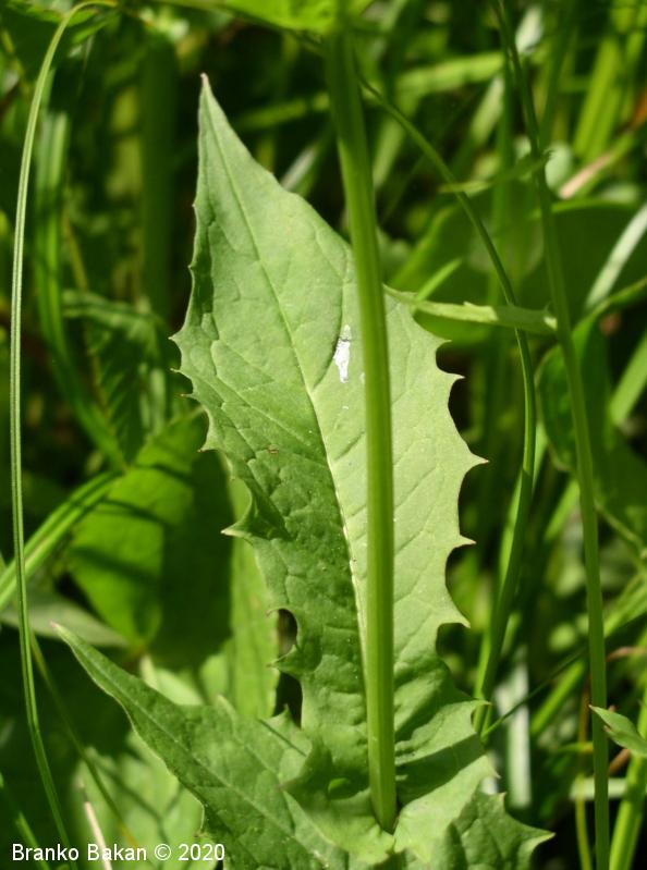 Opis: pokončna, v zgornjem delu češuljasto razrasla trajnica z belim mlečkom. Listi so široko- do podolgastosuličasti, po robu neenakomerno grobo nazobčani ali nacepljeni (redkeje pernato deljeni), goli, spodnji so podaljšani v pecelj, zgornji so sedeči in s puščičastim/srčastim dnom obdajajo steblo. Koški so dokaj veliki, tvorijo jih jezičasti, zlatorumeni cvetovi. Ovojkovi listi so gosto črnodlakavi, nameščeni v dveh redeh, zunanji so drobni, notranji so dolgi, ozkočrtalasti, tesno prilegli h košku. Plod je jajčast orešek (rožka), z vzdolžnimi rebri in šopasto kodeljico (reducirana čaša) na vrhu.