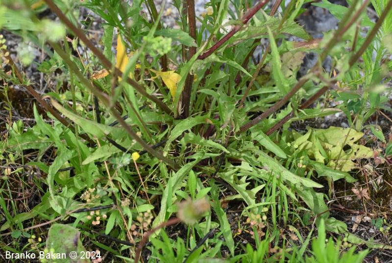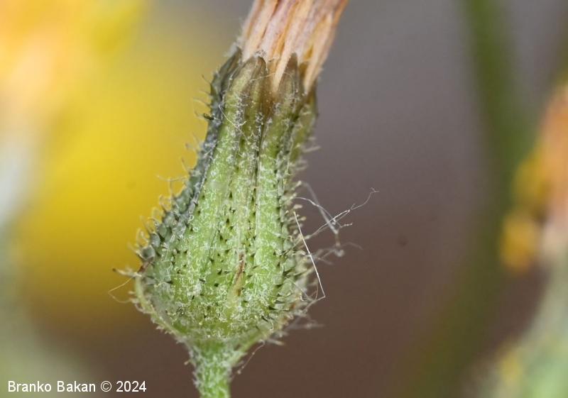 Opis: pokončna, v zgornji polovici precej razrasla enoletnica z belim mlečkom. Pritlični listi so podolgasto suličasti, pernato deljeni ali nacepljeni v trikotne, grobo nazobčane roglje, stebelni listi so ozkosuličasti, pernato deljeni, sedeči, s puščičastim dnom objemajo steblo. Koški so okrog 1 cm veliki, združeni v češuljasto razvejana socvetja, v spodnjem delu rahlo trebušasti, tvorijo jih jezičasti, svetlorumeni cvetovi, ki so po zunanji strani pogosto rdečkasti. Ovojkovi listi so štrleče žlezastodlakavi, nameščeni v dveh redeh, zunanji so drobni, štrleči, notranji so dolgi, ozkočrtalasti, tesno prilegli h košku. Plod je podolgast orešek (rožka), vzdolžno rebast, s kodeljico (reducirana čaša) iz belih, enostavnih laskov na vrhu.