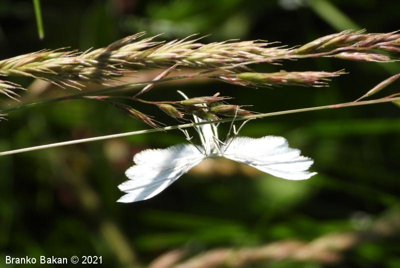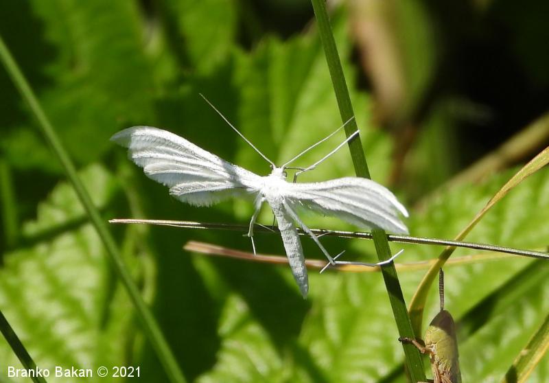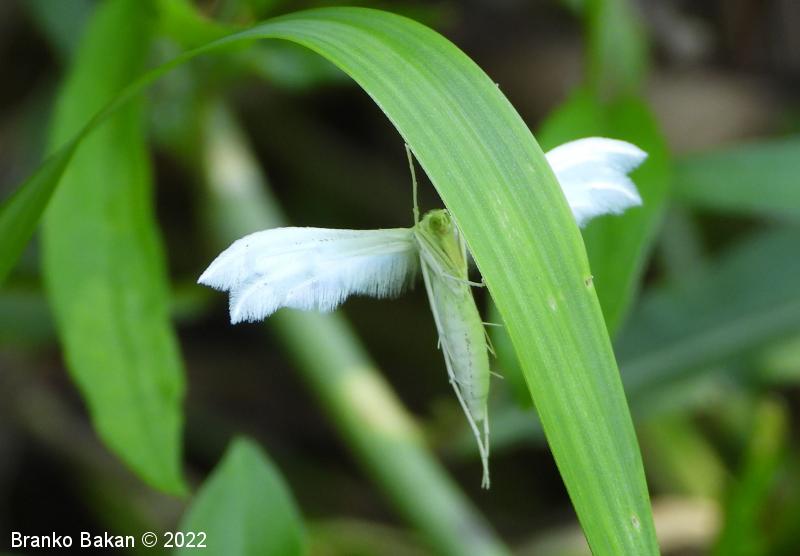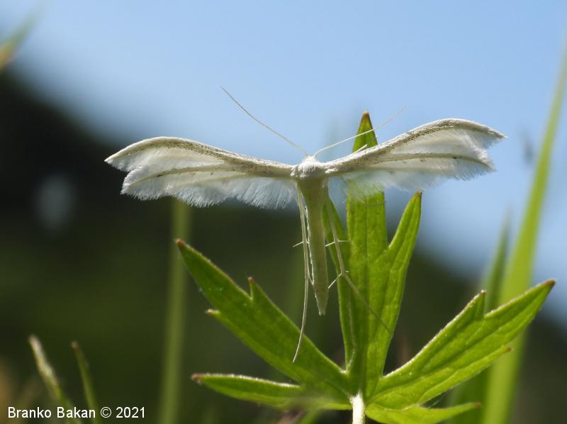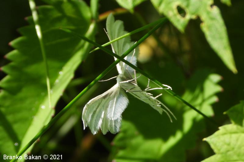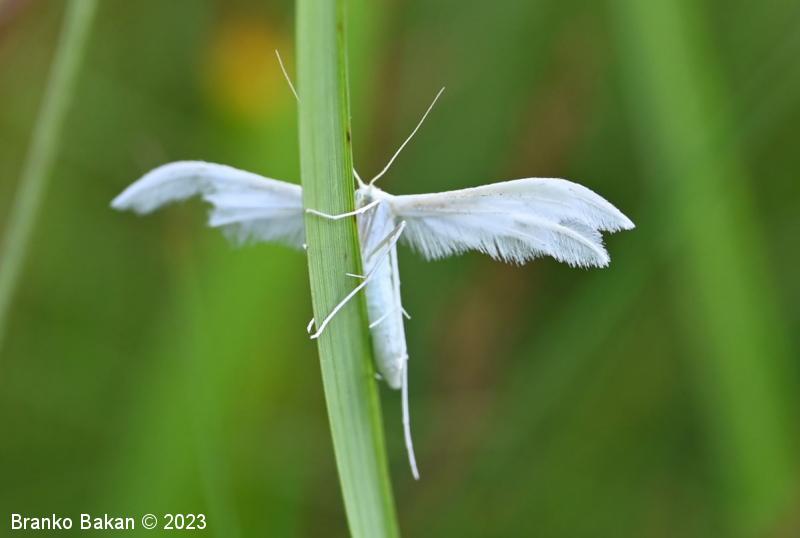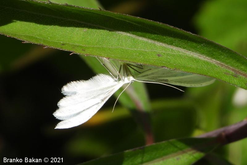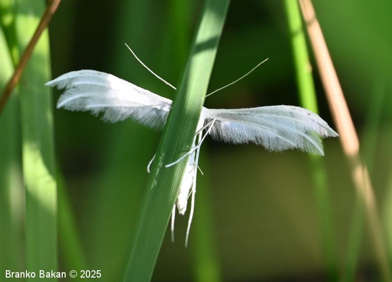 Odrasli osebki: srebrnkastobelo obarvani metulji z deljenimi in značilno peresasto nacefranimi krili. Sprednja krila so razdeljena v dva, zadnja krila v tri segmente, ki so fino peresasto dlakavi, včasih drobno črno pikčasti. Telo je vitko, prav tako belo, noge so dolge, tanke, na členkih porasle z dolgimi, nitastimi izrastki.
