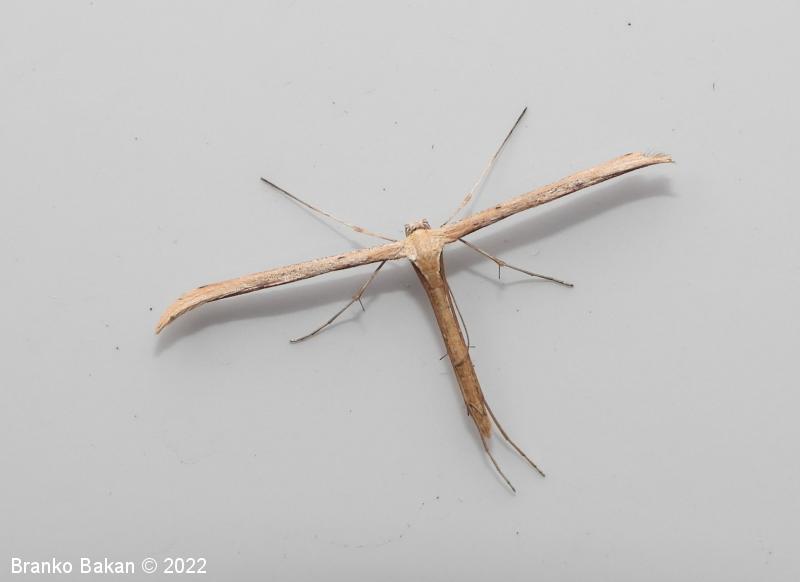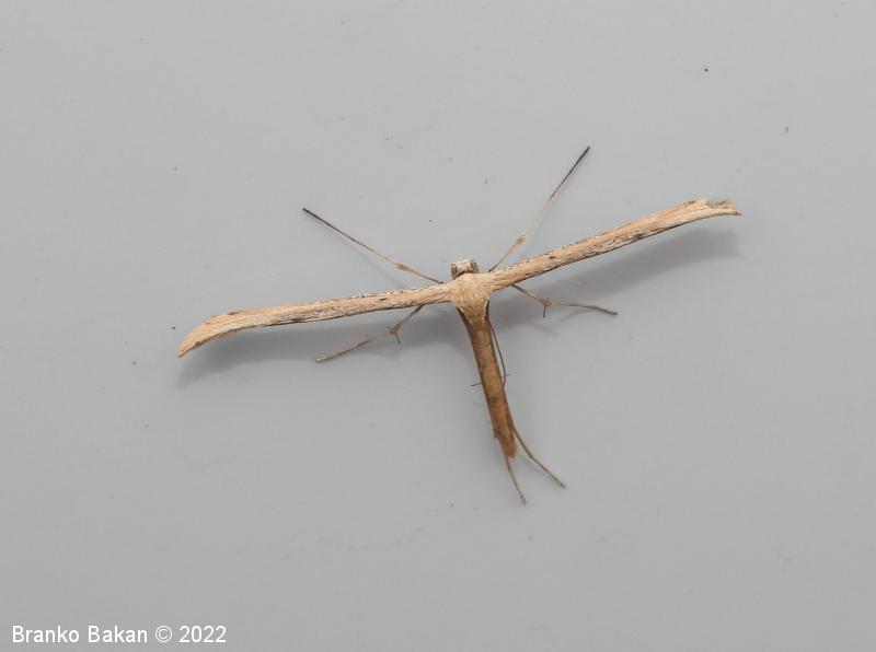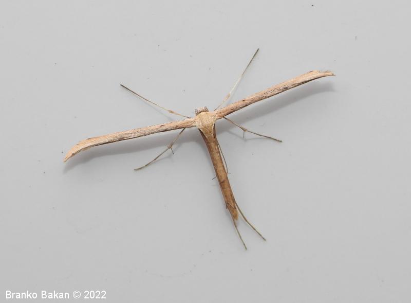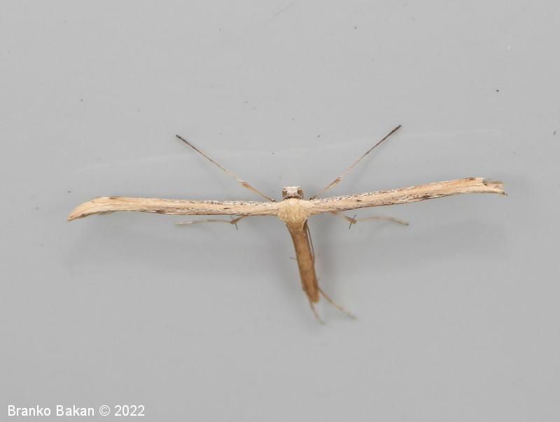 Odrasli osebki: krila so deljena in značilno peresasto nacefrana, ko so zložena so zelo ozka in s telesom tvorijo črko T. Sprednja krila so nekje do tretjine razdeljena v dva segmenta, zadnja krila v tri segmente, ki so fino peresasto dlakavi. Obarvanost kril je variabilna, večinoma so kremasto- ali sivorjava s srebrnkastim leskom, s črno liso na bazi, včasih drobno črno pikčasta. Telo je vitko, zadek se tik pod oprsjem zoži v obliki črke V. Noge so dolge, vitke, na členkih le s posamičnimi stranskimi izrastki.