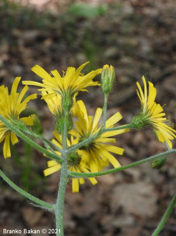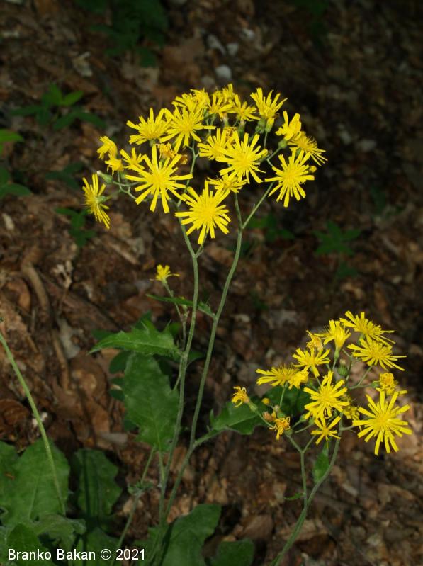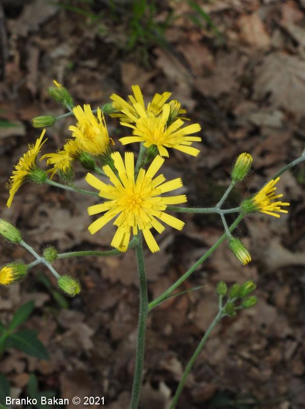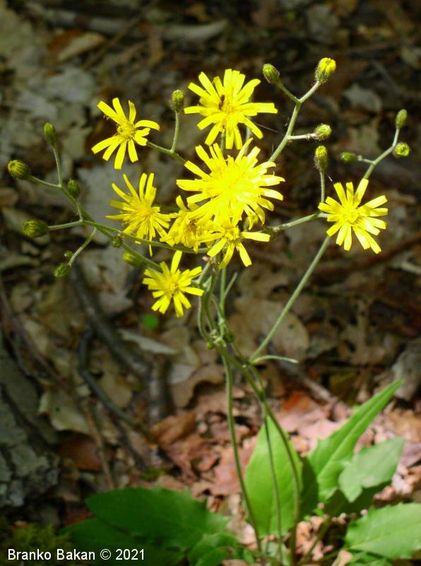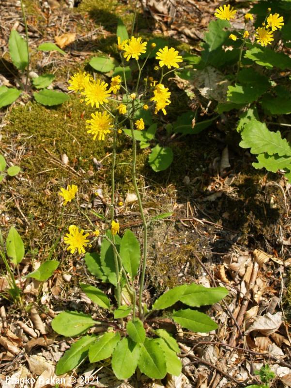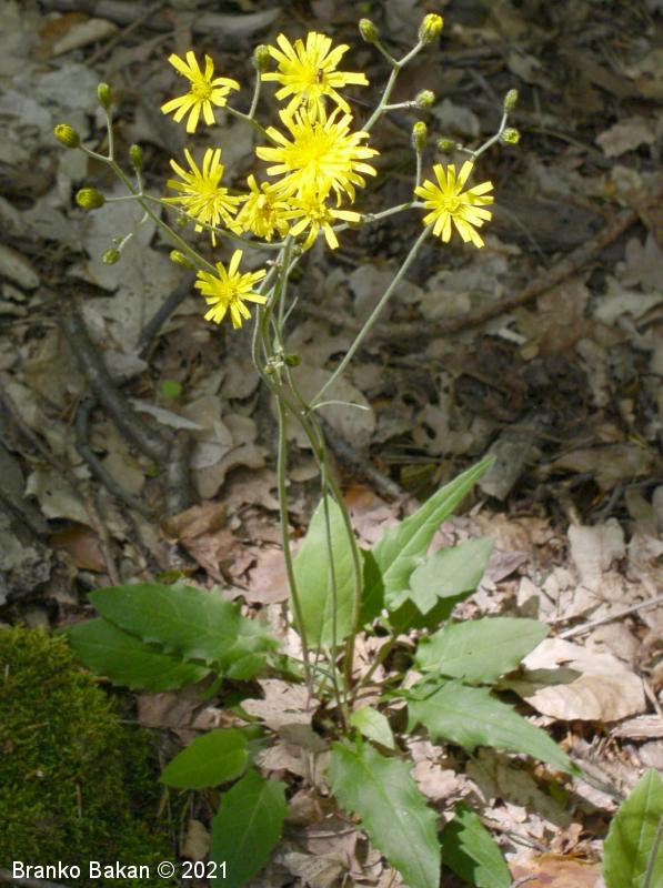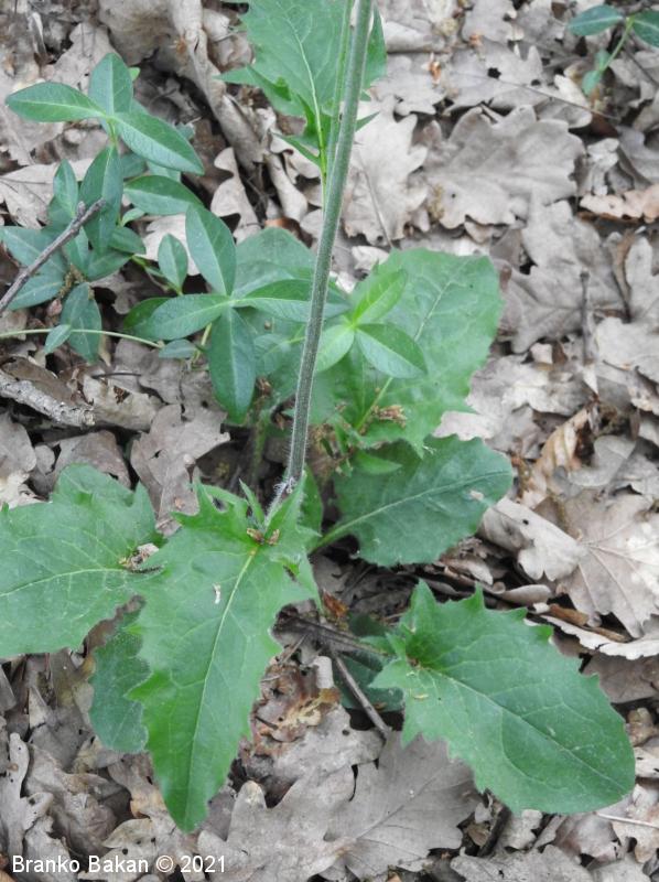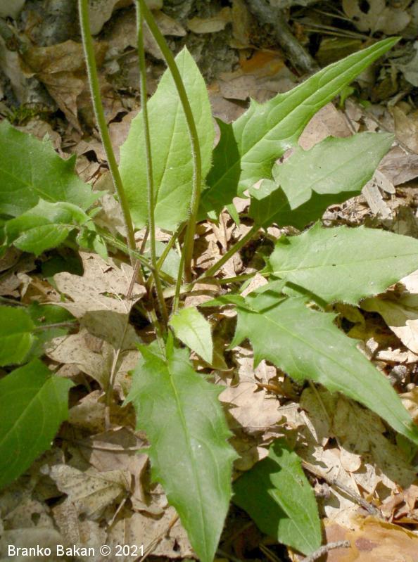Opis: pokončna, dlakava trajnica s kratko, krepko koreniko in belim mlečkom. Pritlični listi so dolgopecljati, v navidezni rozeti, v obrisu podolgastosuličasti, po robu grobo nazobčani ali nacepljeni v roglje, dlakavi, temnozeleni, z ravnim ali rahlo puščičastim dnom, stebelni list je večinoma le en sam (redkje dva), sedeč, suličast, po robu nazobčan ali nacepljen, mnogo manjši od pritličnih listov. Koškov je malo, so na dolgih pecljih in v delno razvejanem, ovršnem socvetju. Steblo v zgornjem delu in cvetni peclji so porasli s črnimi, žleznimi, enostavnimi laski, prav tako ovojkovi listi, ki so ozkočrtalasti, nameščeni v dveh redeh (notranji so daljši in ožji od zunanjih). Plod je črnorjav orešek (rožka), ki ima na vrhu lasasto kodeljico (reducirani čašni listi).
