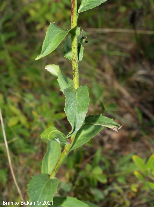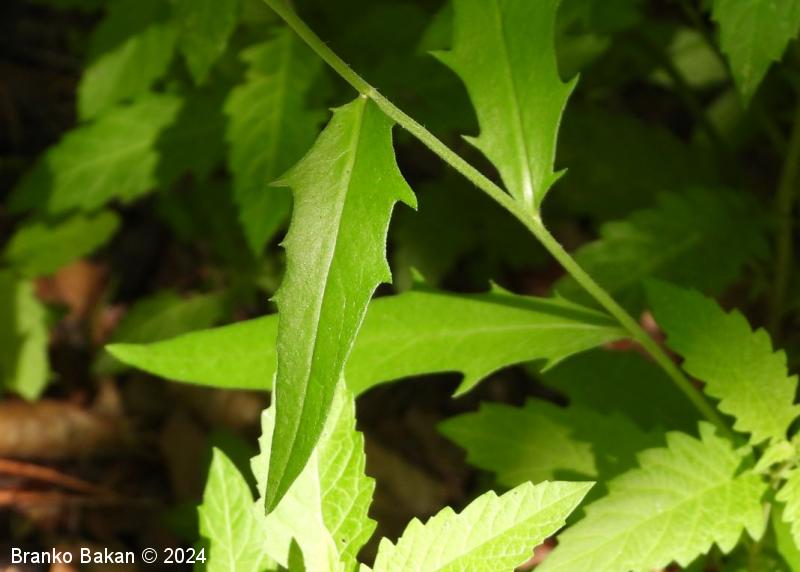 Opis: pokončna, gosto olistana in le malo razrasla trajnica z belim mlečkom in večinoma brez pritlične listne rozete. Stebelni listi so podolgasto suličasti, po robu neenakomerno grobo nazobčani ali nacepljeni v ozke, rogljate zobce, bleščeči, večinoma goli, sedeči. Koški so združeni v ovršno, latasto razvejano socvetje, živorumeni, razviti so le jezičasti cvetovi. Ovojkovi listi, ki obdajajo koške, so nameščeni v več redeh in različno veliki, goli ali porasli z redkimi enostavnimi in zvezdastimi dlakami. Plod je temnorjav orešek (rožka), ki ima na vrhu kodeljico (reducirani čašni listi) iz enostavnih, belih laskov.