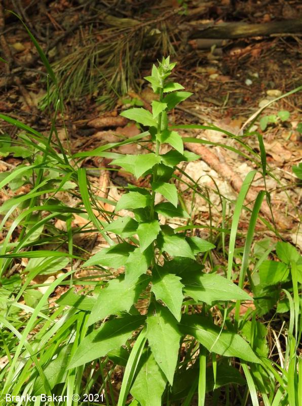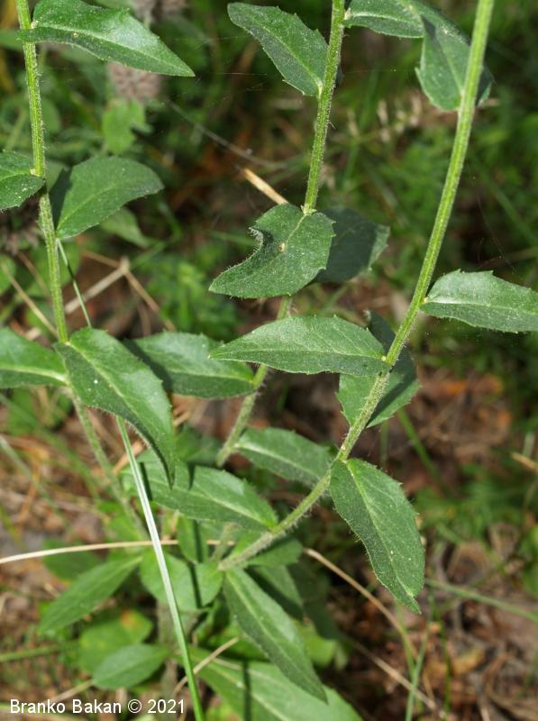 Opis: pokončna, gosto (nad 20 listov, med seboj so zbližani) ali redko (do 20 listov, med seboj so odmaknjeni) olistana trajnica z belim mlečkom in brez pritlične listne rozete. Stebelni listi se proti vrhu stebla postopno manjšajo, so podolgasto suličasti do jajčasti, celorobi ali neenakomerno grobo nazobčani, dlakavi, sedeči, proti dnu zoženi ali z rahlo srčastim dnom. Koški so združeni v podaljšano latasto socvetje ali izraščajo iz zalistnih, dolgopecljatih socvetij, živorumeni, razviti so le jezičasti cvetovi. Ovojkovi listi, ki obdajajo koške, ozkojajčasti, topi, nameščeni v več redeh, zunanji so mnogo krajši od notranjih, pogosto črnikasti in na redko porasli z žlezastimi in nežlezastimi laski. Plod je temnorjav orešek (rožka), ki ima na vrhu kodeljico (reducirani čašni listi) iz enostavnih, belih laskov.