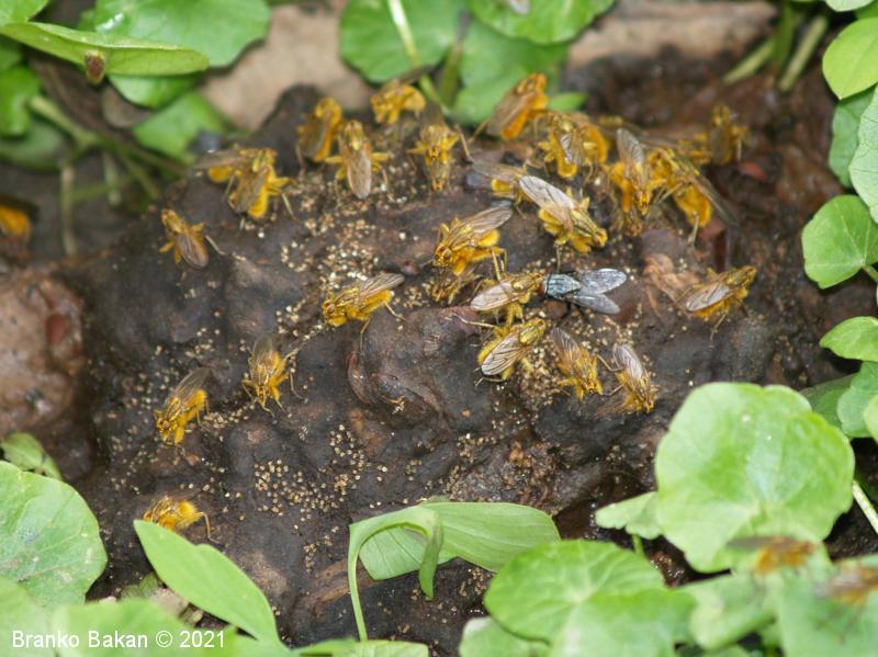 Obnašanje in razvoj: odrasli so aktivni čez dan in pogosto posedajo po iztrebkih (predvsem velikih sesalcev - npr. goveda). Aktivni so od marca do novembra, še posebej v sončnih dneh. Hranijo se plenilsko, lovijo predvsem manjše dvokrilce in druge leteče žuželke. Samice odlagajo jajčeca v iztrebke, v katerih potem ličinke živijo in se z njimi tudi hranijo.