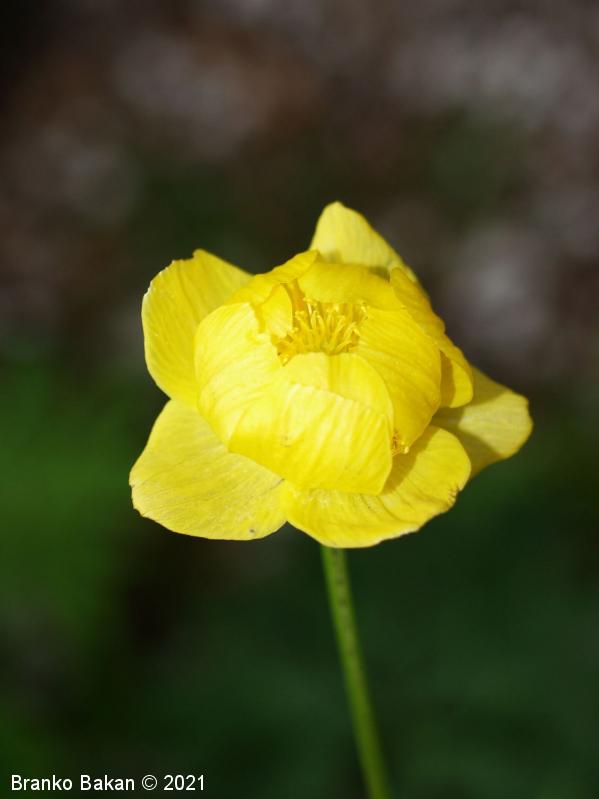 Opis: pokončna, gola trajnica z gosto šopasto razraslimi koreninami. Steblo je večinoma nerazraslo, robato, golo, bleščeče, ponavadi enocvetno. Listi so skoraj do dna 1- do 2-krat dlanasto deljeni v široke, po robu nazobčane do nacepljene, suličaste krpe, bleščeči, dolgopecljati, pri dnu peclja nekoliko nožničasti. Cvetovi so veliki, do 3 cm široki, zlatorumeni, sestavljeni iz 5-15, upognjenih cvetnih listov (zato so cvetovi skoraj okrogli), ki obdajajo 5-10 zelenkastih, žličastih nektarijev. Plodni listi so prosti, številni, prav tako številni so prašniki. Plodovi so mešički, razporejeni v krogu, pokončni, na vrhu z upognjenim, kratkim kljuncem.