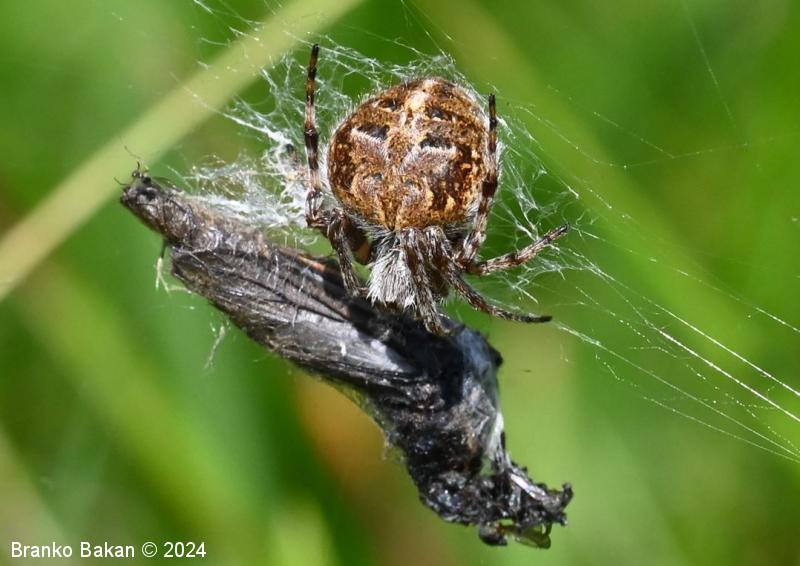 Podobne vrste (*neuveljavljeno ime): štiripikasti križevec (Araneus quadratus) - trstni obrežni mrežar* (Larinioides cornutus) - mostovni križevec (Larinioides sclopetarius).
