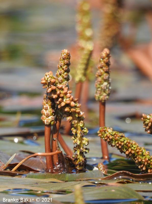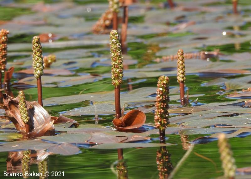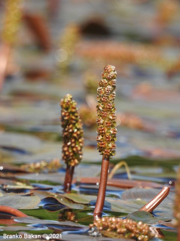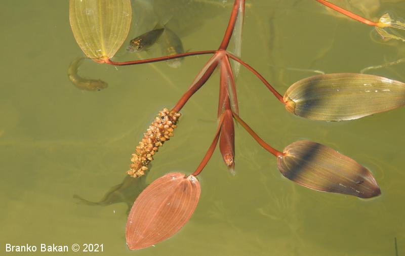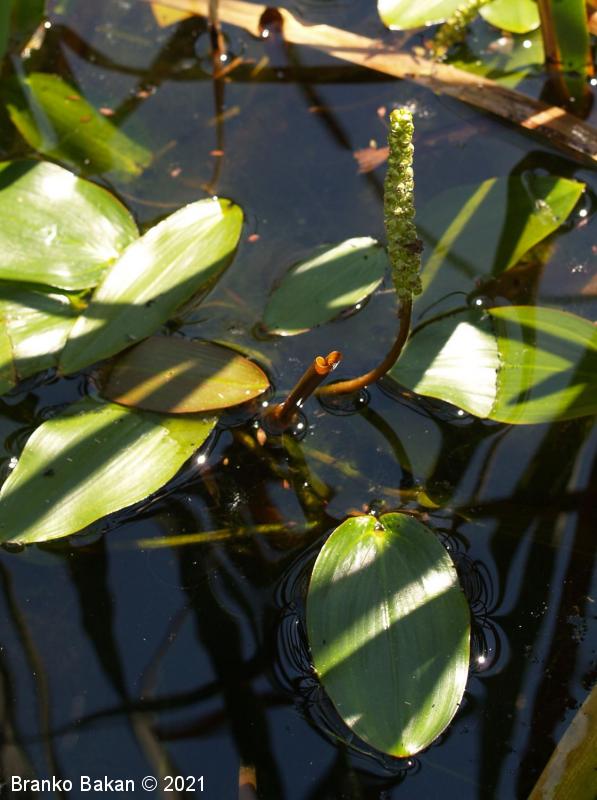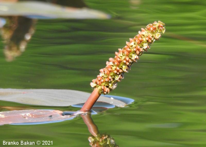 Opis: ukoreninjena vodna trajnica s premenjalno razvrščenimi potopljenimi in plavajočimi listi. Steblo je bolj ali manj okroglo. Plavajoči listi so široko eliptični do jajčasti, dolgopecljati, nekoliko usnjati, pogosto rjavo obarvani, večinoma s srčastim, redkeje z ravnim dnom, 5 do 10 cm dolgi in okrog 4 cm široki, z vzporednimi, lokasto ukrivljenimi žilami. Potopljeni listi v času cvetenja večinoma manjkajo, so ozko črtalasti, sedeči, mlahavi. Socvetje je klasasto, dolgopecljato (pecelj tik pod cvetovi ni vidno odebeljen), 4-15 cm veliko. Cvetovi so drobni, rjavkastozeleni, sedeči, dvospolni. Plodič je podoben orešku, trebušasto zaobljen.