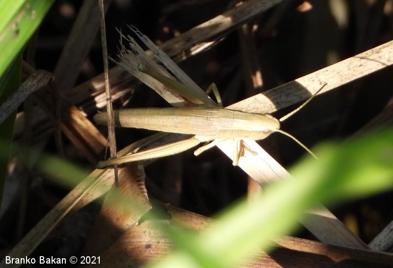 Podobne vrste: kratkokrila suhotravka (Euchorthippus declivus) - zelena bleščavka (Euthystira brachyptera).