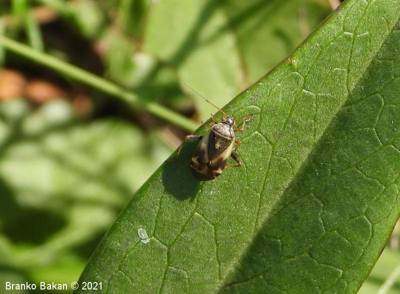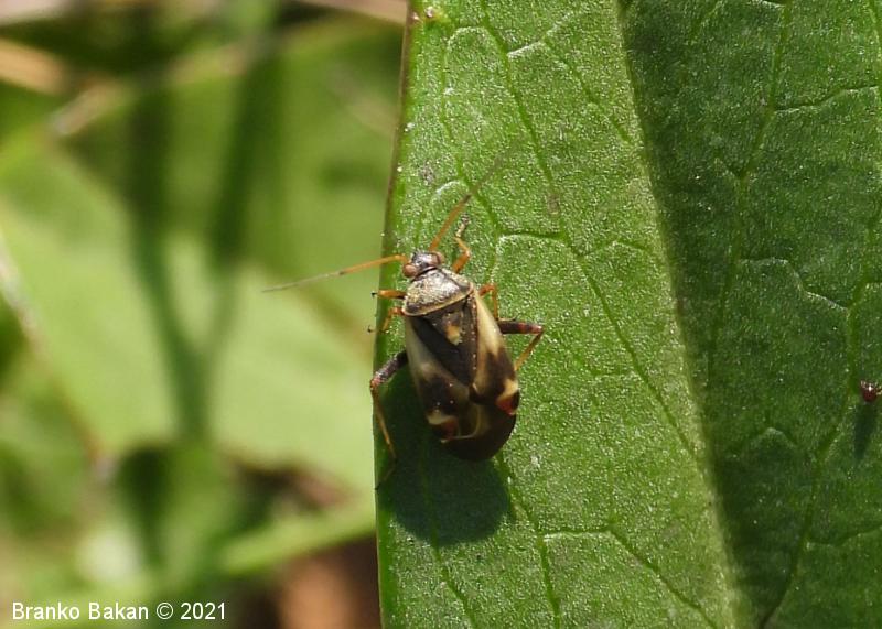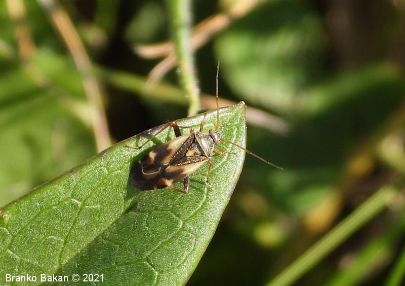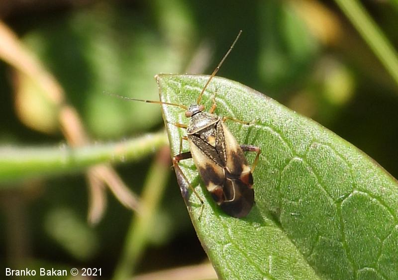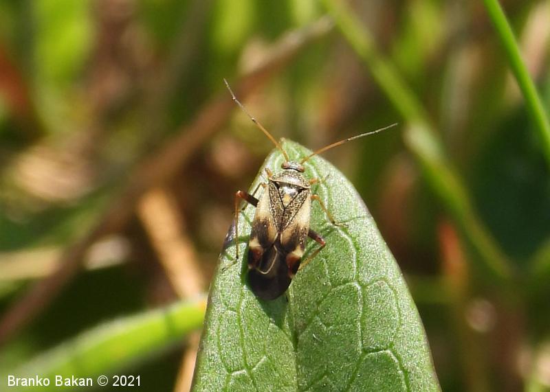 Odrasli osebki: srednje velike stenice s črno-rjavo ali črno-rumeno obarvanim telesom, ki je pokrito s prileglimi, zlatorumenimi ali srebrnkastimi dlačicami. Glava je ozko trikotna, z velikimi očmi, temna. Tipalnice so nitaste, rumenkaste, 2. členek je daljši od ostalih, pri vrhu je temnejši. Oprsje (pronotum) je trikotno trapezasto, črno, v spodnjem delu večinoma rumenkasto obrobljeno. Ščitek (scutellum) je trikoten, temen s svetlo konico (svetel del lahko prevladuje). Pokrovke so večinoma dvobarvno rjavo-rumenkaste, bazalni del (clavus) je temen, osrednji del je rumenkast s temnejšimi lisami ob spodnjem delu (coriumu), ki je navzdol zapognjen, na konicah ima večinoma rdečo liso. Noge so rumenkaste, stegenca zadnjih nog so krepkejša in temnejše obarvana, rjavkasta ali rdečkasta, goleni so po eni strani porasle z ostrimi trni.