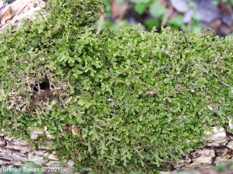 Posebnosti: vrsta je dokaj pogosta v gozdovih, večinoma se razrašča po deblih, na severni strani in bolj pri dnu debla. Zaradi svoje razrasti je pomemben mikrohabitat za številne drobne nevretenčarje.