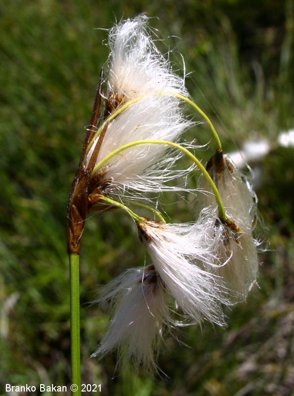 Opis: pokončna, rušnato razrasla trajnica s plazečimi, podzemnimi pritlikami. Steblo je v prerezu skoraj okroglo, redkeje topo trirobo, olistano do vrha. Listi so ozkočrtalasti ali šilasti, žlebasti, pri dnu nekoliko razširjeni in podaljšani v nožnico, 3 do 6 mm široki, podaljšani v dolgo konico, zgornji (ovršni) listi pri dnu lijasto razširjeni. Socvetje je ovršno, sestavljeno iz 3 do 10 dolgopecljatih klaskov (peclji so po vsej površini gladki, kvečjemu nagubani) in so po odcvetu razločno previsni, gosto belo volnato šopasto dlakavi (dlake so podaljšane, šopasto razrasle ščetinice perigona).