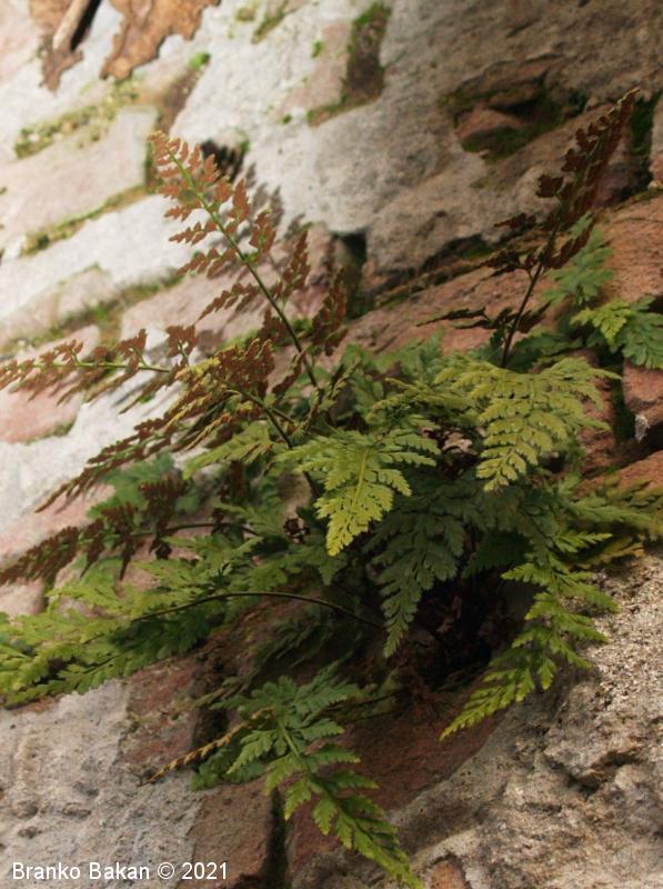 Podobne vrste: priostreni sršaj (Asplenium onopteris) - kijastolistni sršaj (Asplenium cuneifolium) - krhka priščanica (Cystopteris fragilis).