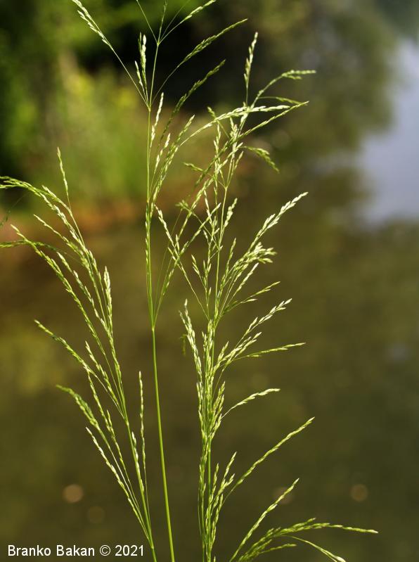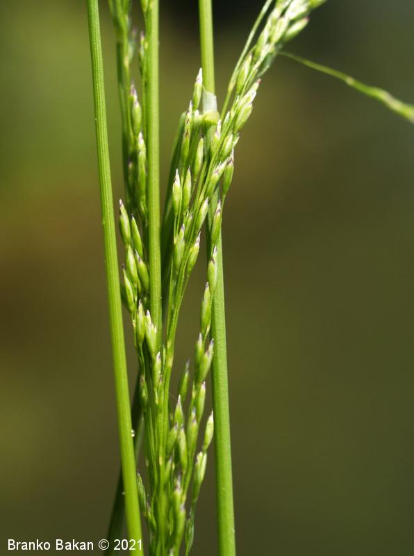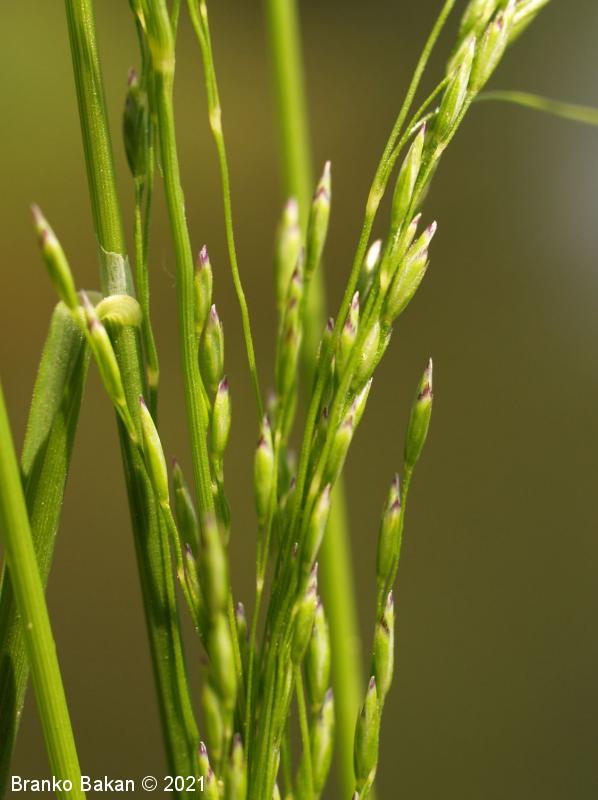 Opis: pokončna, rahlorušnata večletnica z zelo kratko koreniko. Listi so črtalasti, 2 do 4 mm široki, večinoma štrleči, s čolničasto oblikovano konico. Listna kožica (ligula) je razočna, 2 do 3 mm dolga, koničasta, na vrhu pogosto narezana. Lat je rahlocveten, do 30 cm velik, podolgast, sprva mlahav in previsen, kasneje večinoma pokončen (socvetje je navidez podobno socvetju prosa (Panicum spp.)). Stranske vejice so dolgopecljate, raskave, večinoma vodoravno štrleče, na najnižjem kolencu socvetja večinoma od 2 do 4 vejic. Klaski so jajčasti, pogosto vijoličasto nadahnjeni, 2 do 4 mm veliki. Krovne pleve so svetlo obrobljene, z rumenkasto konico, včasih redkodlakave.