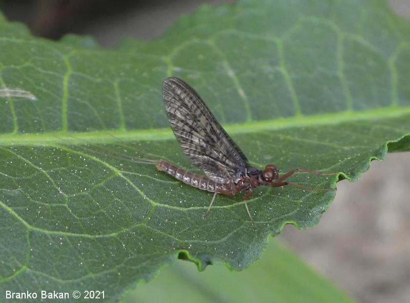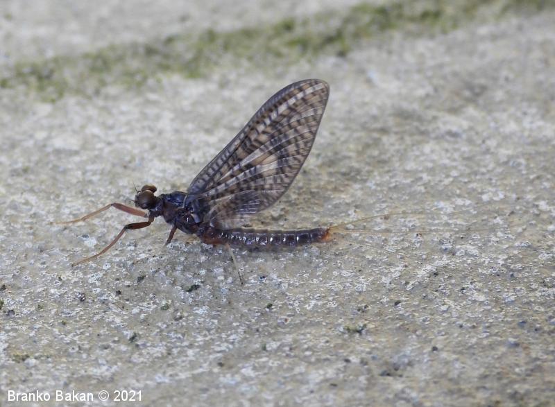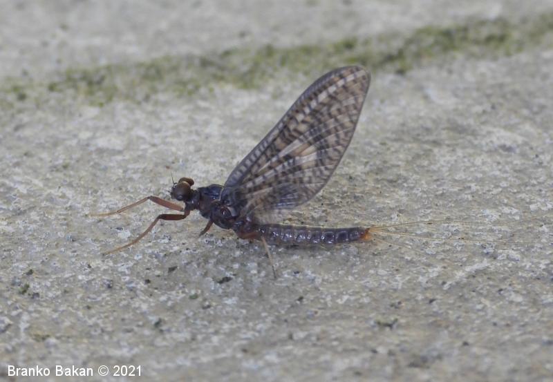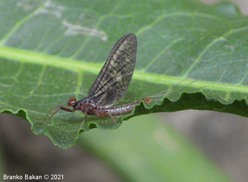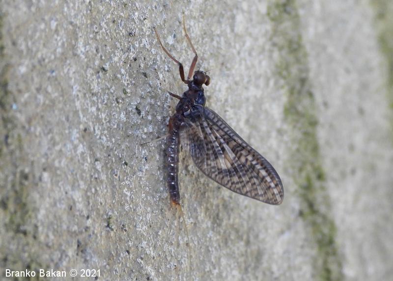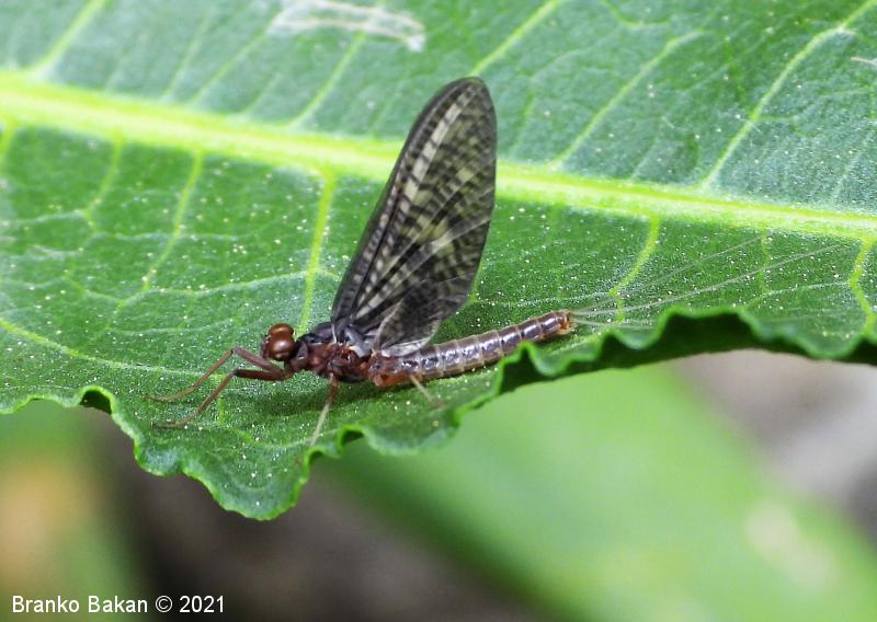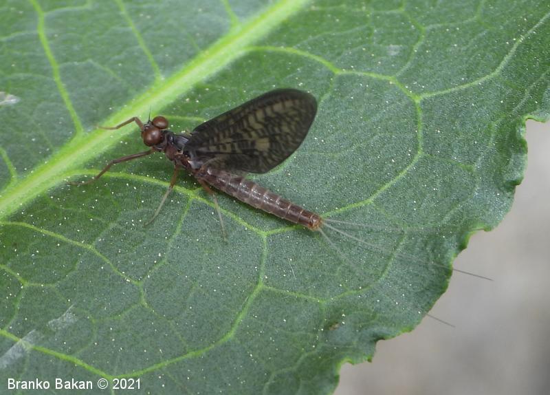 Odrasli osebki: srednje velike enodnevnice s temnorjavim telesom. Oči so pri samcih močno (teleskopsko) povečane, pri samicah so manjše. Sprednja krila so podaljšano trikotna, proti vrhu nekoliko zožena, umazano prosojna, s temnimi prečnimi črtami, v osrednjem delu razločno "okno" brez črt, zadnja krila so mnogo manjša, jajčasta, prav tako črtasto marmorirana. Zadek je vitek, temnorjav, na koncu s tremi dolgimi izrastki (cerki). Sprednje noge so predvsem pri samcih precej večje, stegenca so rjava, ostali deli nog so večinoma svetlejši.