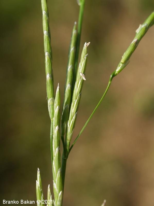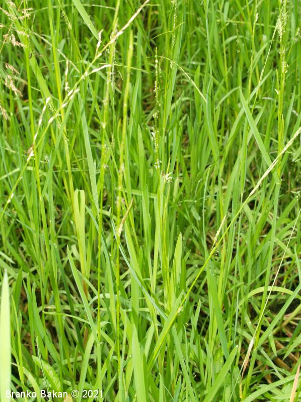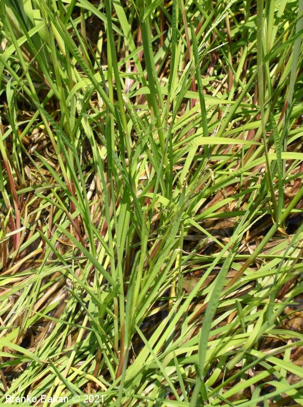 Opis: vodna ali obvodna trajnica, ki se gosto razrašča s pomočjo dolgih, plazečih pritlik. Steblo je v spodnjem delu pogosto lokasto upognjeno in se ukoreninja. Listi so črtalasti, togi, 5-10 mm široki, štrleči ali mlahavi. Socvetje je podolgasto, latasto razraslo, stranske vejice so pecljate, večinoma prilegle ob os socvetja in pogosto enostransko nameščene, pogosto s po enim ali dvema klaskoma. Ti so ozko podolgasti, na vrhu koničasti, 15-25 mm dolgi. Krovne pleve so zelene, na vrhu pogosto dvozobe ali koničaste, s suhokožnatim robom.
