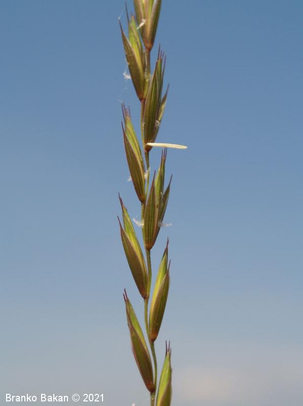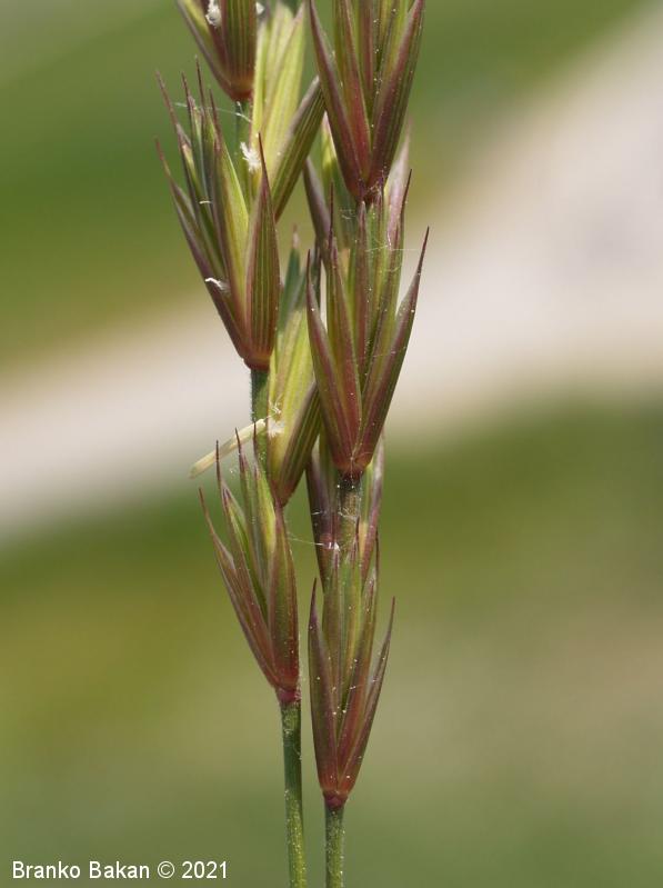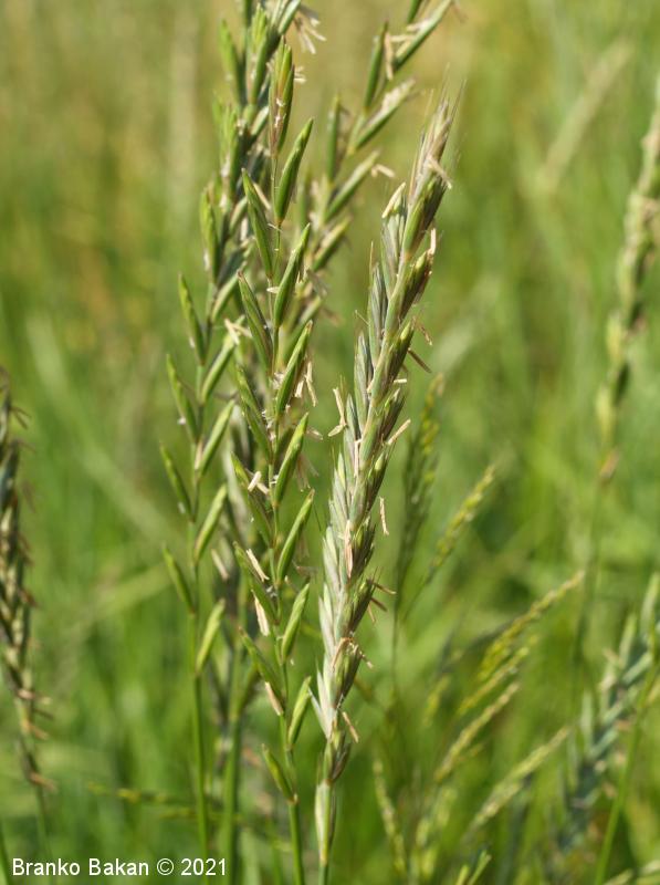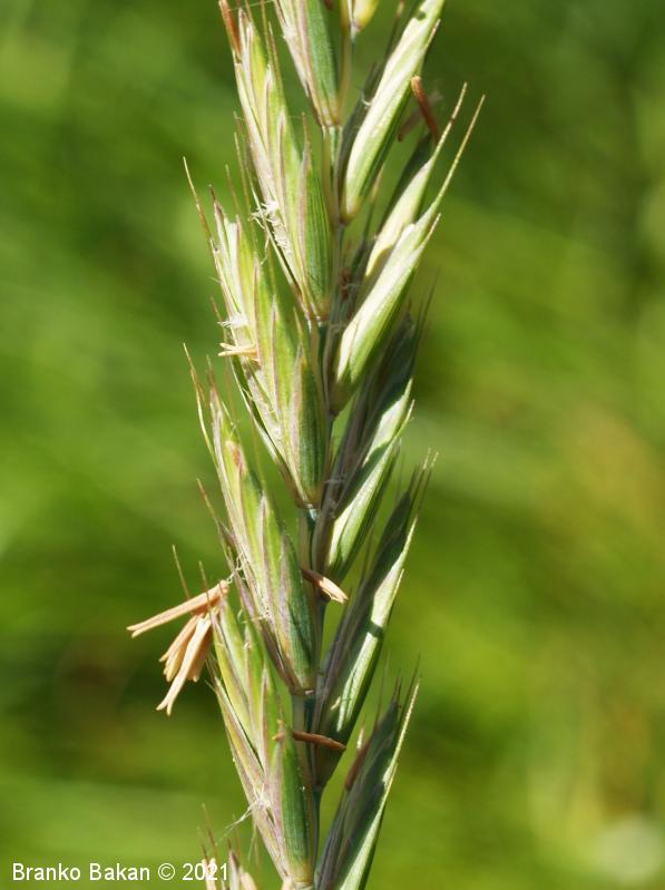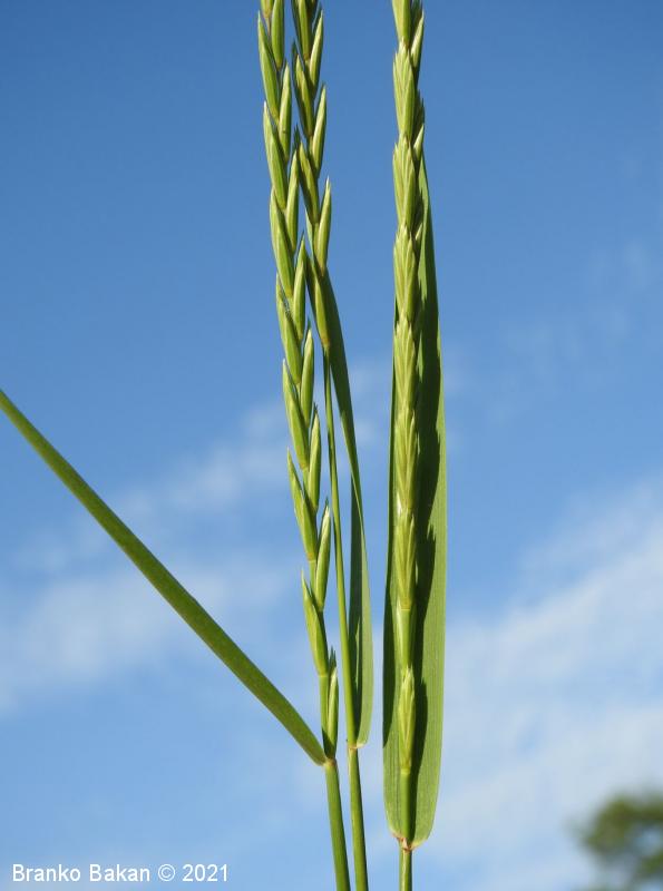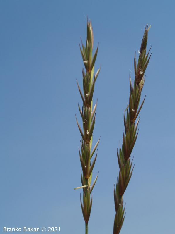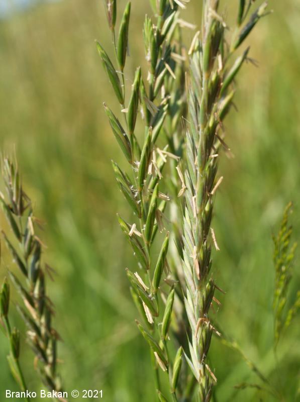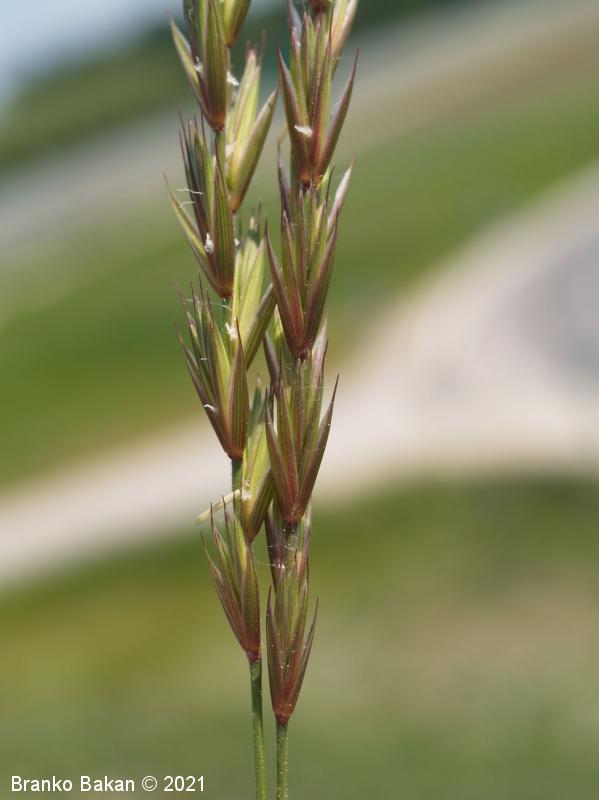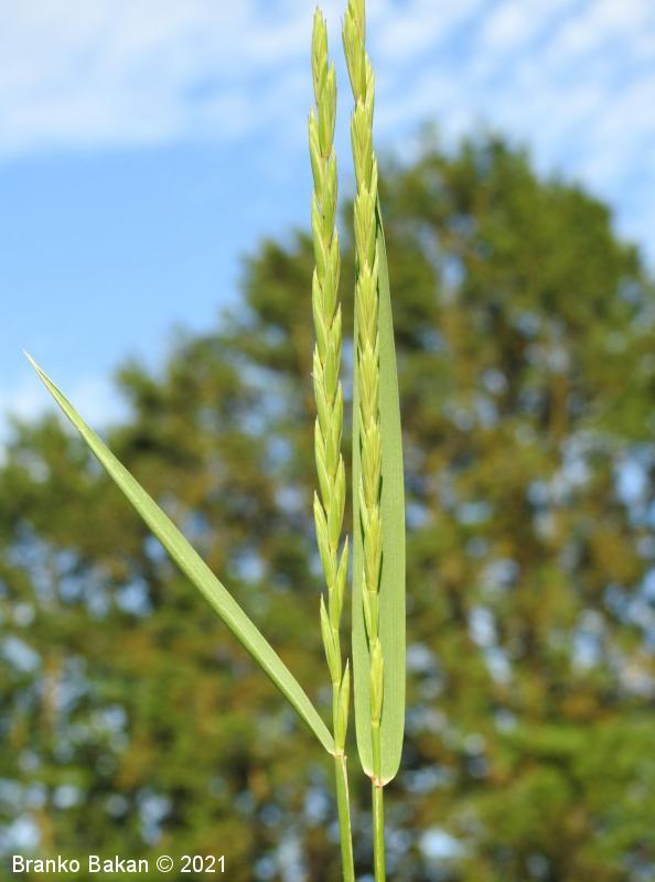 Opis: rušnata, zelena do nekoliko sinjezelena trajnica z dolgimi, plazečimi, podzemnimi pritlikami. Listi so črtalasti, ploski, do 12 mm široki, goli ali raztreseno dlakavi, pri vrhu kratko koničasti, raskavi. Listna kožica (ligula) je topo zaokrožena, do 1 mm velika. Socvetje je klasasto, strnjeno, do 15 cm veliko, pokončno. Klaski so jajčasti ali rombasti, 8 do 15 mm dolgi, sedeči, s širšo stranjo obrnjeni k osi socvetja (kar jih loči od podobnega rodu Lolium), pokončno štrleči, po cvetenju razprostrti. Ogrinjalni plevi sta ozko koničasti, zeleni, brez res, večnoma 5- do 7-žilnati, skoraj enako dolgi. Krovne pleve brez res ali s kratko, do 5 mm dolgo reso, s suhokožnatim robom, koničasto priostrene.