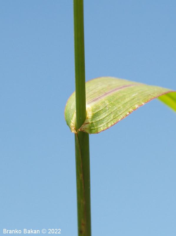 Opis: pokončna ali kipeča (redkeje polegla), šopasta enoletnica. Steblo je pri dnu kolenčasto upognjeno, občasno razraslo, mestoma se na kolencih ukoreninja. Listi so široko črtalasti, temnozeleni, ploski, goli, do 15 mm široki, raskavi, z osrednjo, gredljasto žilo. Listna kožica (ligula) ni razvita. Socvetje je latasto, stranske vejice so večinoma nerazrasle, navzgor štrleče, gosto in enostransko porasle s skoraj sedečimi klaski. Klaski so enocvetni, 3 do 4 mm dolgi, zeleni ali rdečkasti. Pleve večinoma brez res ali z do 3 cm dolgimi, rdečkastimi resami.