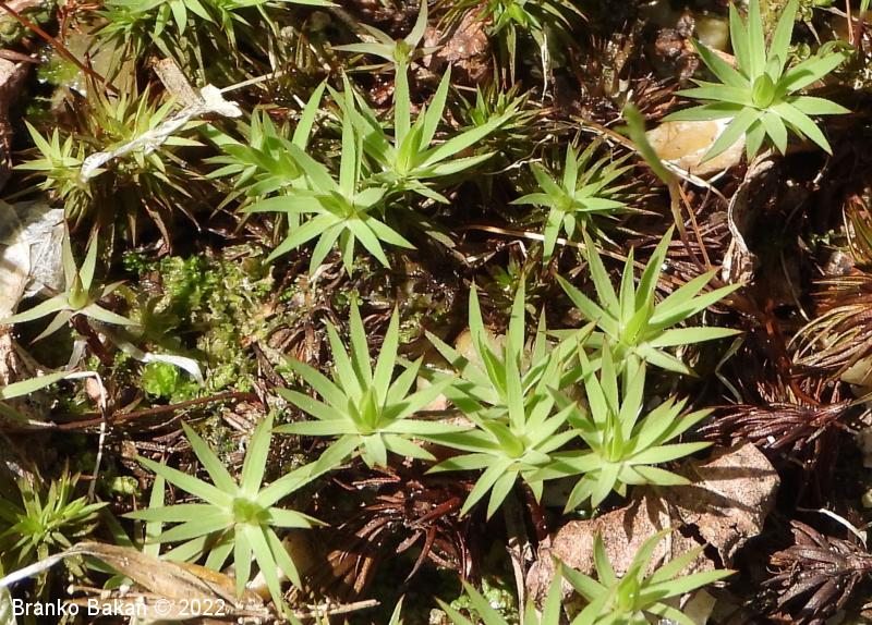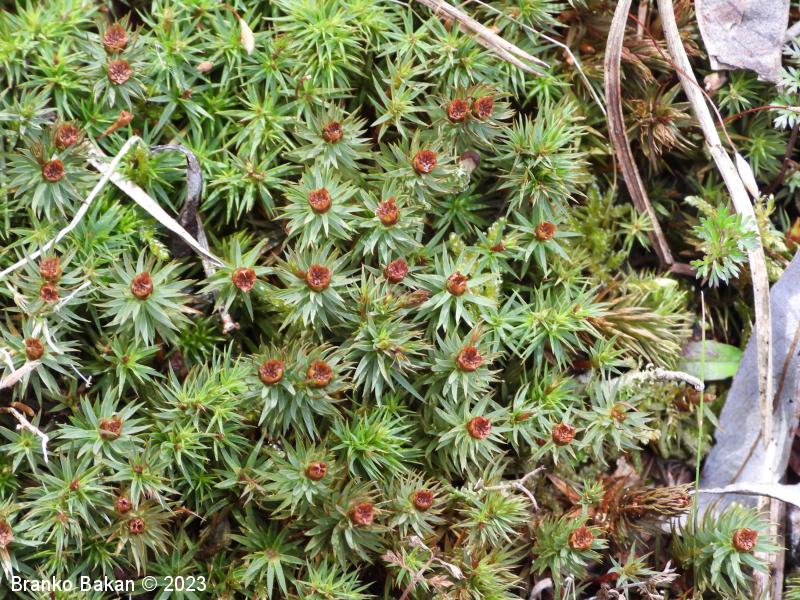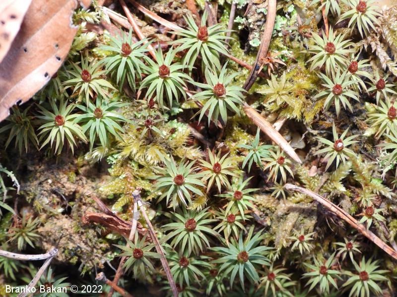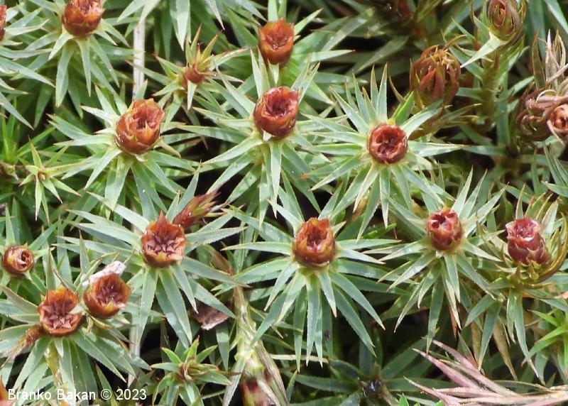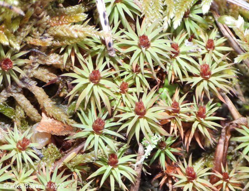 Opis: gametofit (spolna rastlina) je pokončen, večinoma z enostavnim, gosto olistanim stebelcem, tvori rahle, preprogaste sestoje. Lističi so ozko črtalasti, sivo- do sinjezeleni, pri dnu nekoliko nožničasto razširjeni, na vrhu ostro koničasti ali podaljšani v ostnato konico (osrednja "žila"), 5 do 8 mm dolgi, v vlažnem stanju togo poševno do vodoravno štrleči (posušeni navzgor štrleči), po celem robu fino nazobčani, na vrhu stebelca rozetasto do zvezdasto razvrščeni, pri "moških" rastlinah ob zrelosti arhegonijev na vrhu z rdečkasto, čašasto rozeto. Sporofit (nespolna generacija) izrašča iz vrha stebelca, ima do 3 cm dolg pecelj (seta), na vrhu katerega je pokončna, kratko valjasta pušica (kapsula) s kratkokljunastim pokrovčkom (operkulum), ki jo v mladosti prekriva nacefrana čepica (kaliptra).