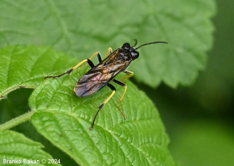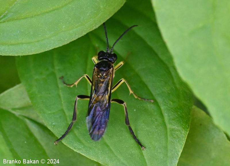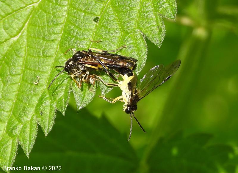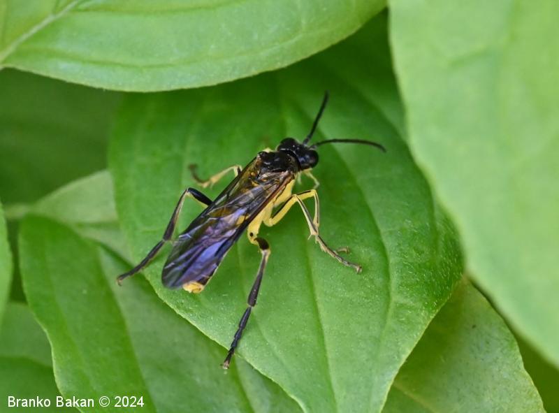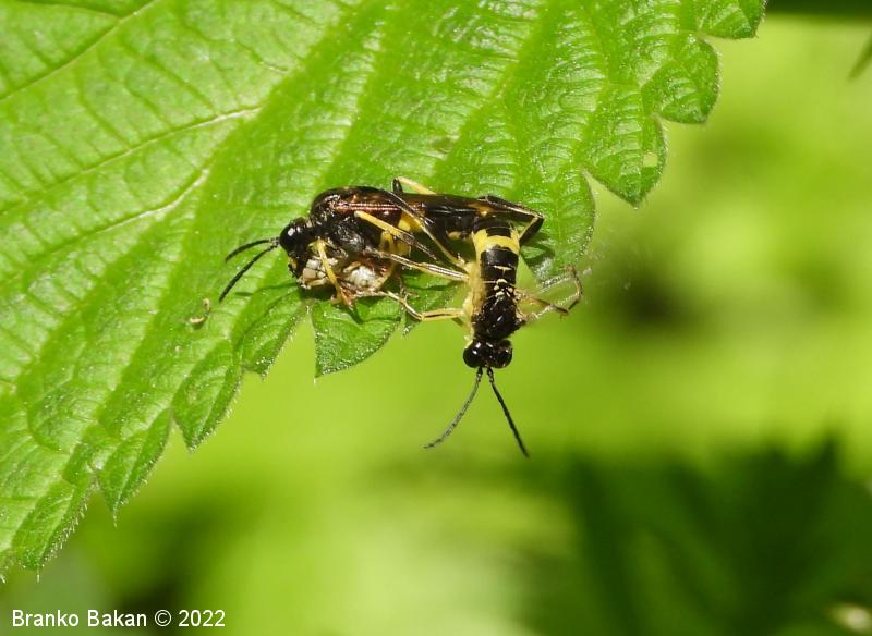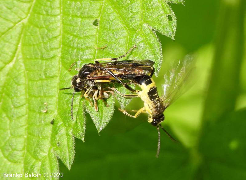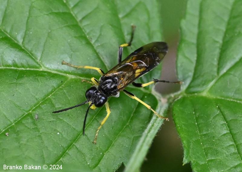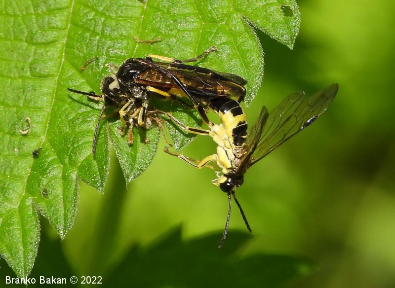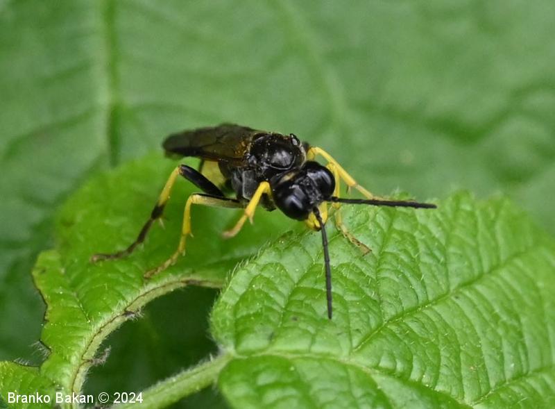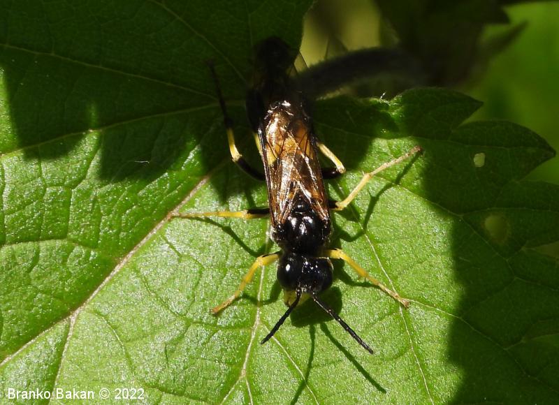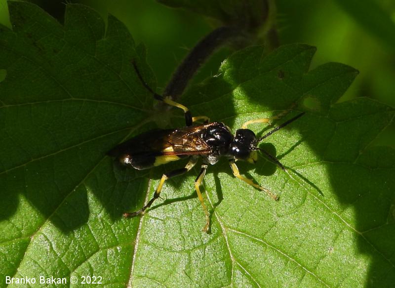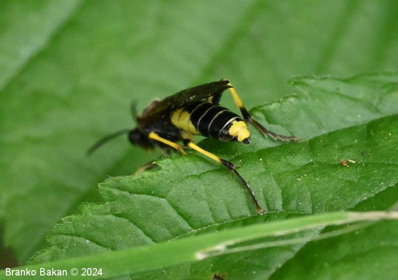Odrasli osebki: so precej veliki in po obarvanosti spominjajo na prave ose. Glava in oprsje sta bleščeče črna, čeljusti in ustnice so skoraj v celoti rumene, pri samicah je rumeno tudi zatilje. Tipalnice so členaste, črne. Na oprsju so pogoste prečne rumene črte. Krila so pri samicah rahlo rjavkasta, pri samcih skoraj prosojna, s črno, ozko pterostigmo (obarvano žilno okence) in okrepljenim, rjavim kostalnim delom. Zadek je črn s širokim, prečnim rumenim pasom in rumeno konico (obarvanost variira). Noge so prav tako rumene, s črnimi črtami po sprednjih stegencih in golenih, zadnje goleni so pri samcih skoraj v celoti črne, pri samicah so večji del rumene.