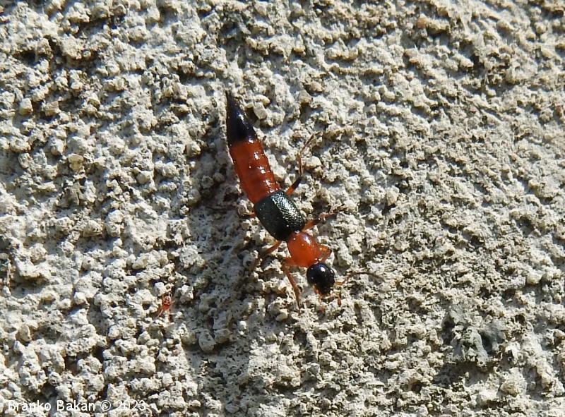 Še težje se loči od zelo podobnega balkanskega obrežnika* (Paederus balcanicus).