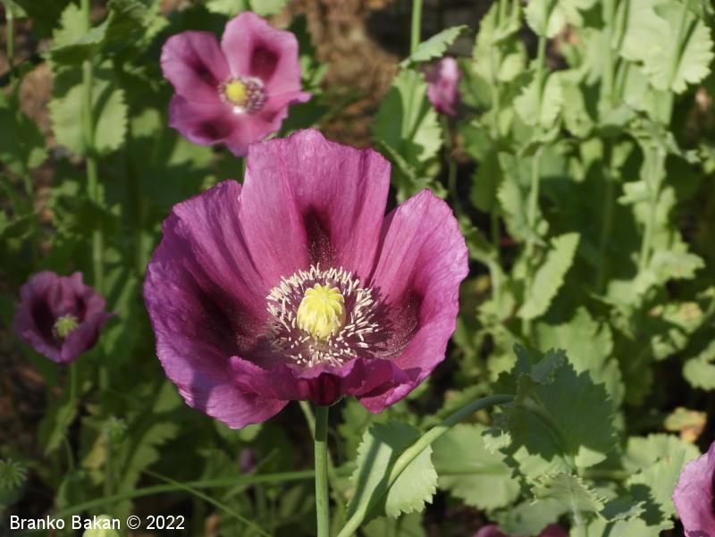 Opis: visoka, pokončna enoletnica z večinoma golim steblom (to je štrleče dlakavo le v cvetni regiji), ki vsebuje bel mleček. Listi so podolgasti, sinje- ali sivozeleni, enostavni, po robu ostro nazobčani ali nacepljeni, sedeči in objemajo steblo. Cvetovi so veliki, večinoma vijoličasti, bledovijoličasti ali beli z vijoličastim dnom, redkeje rdeči. Venčni listi so 4 (včasih tudi več), čašna lista sta 2, zgodaj odpadeta. Prašniki so številni, plodnica je nadrasla, z zvezdasto razraslo brazdo. Plod je glavica, ki se odpira z luknjicami pri vrhu, velika je do 6 cm. Semena so drobna, črna (makova semena).