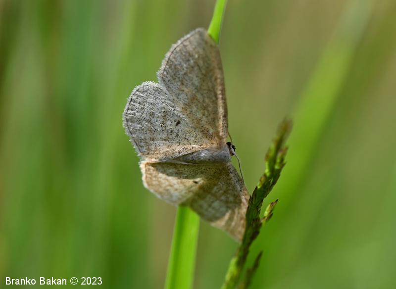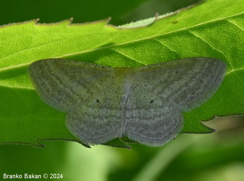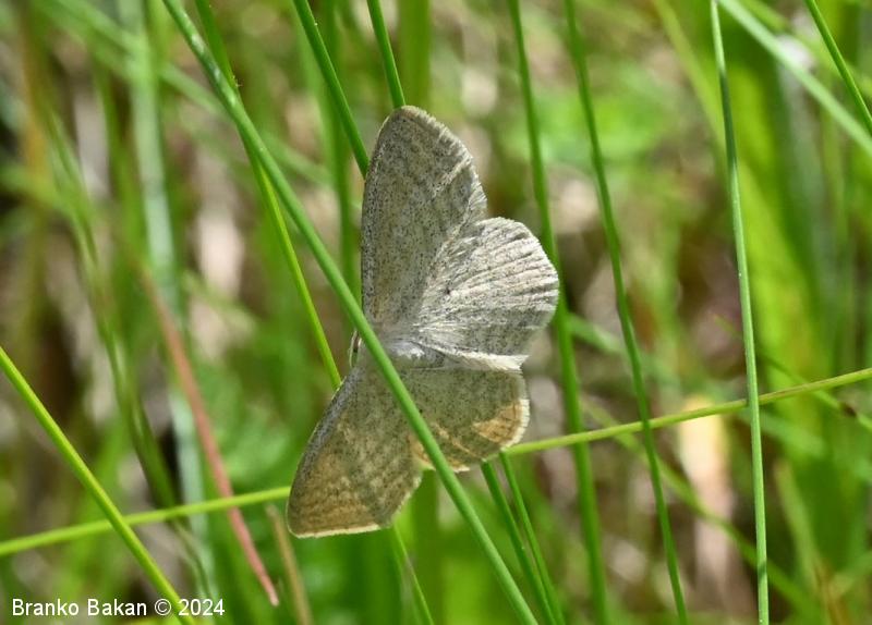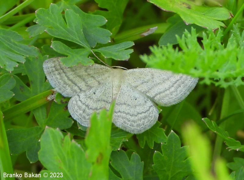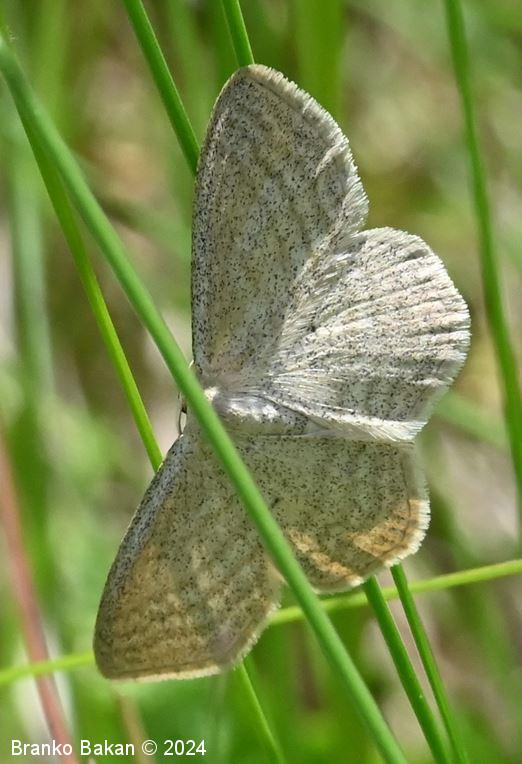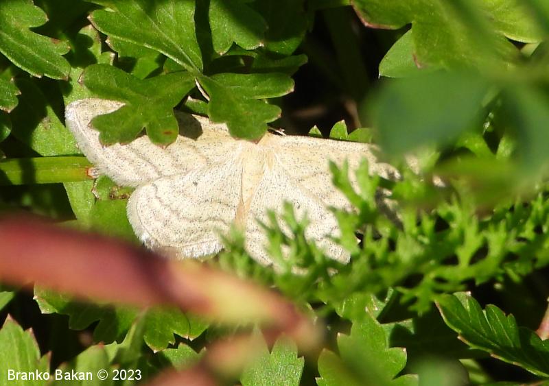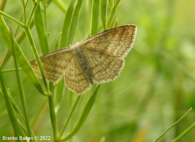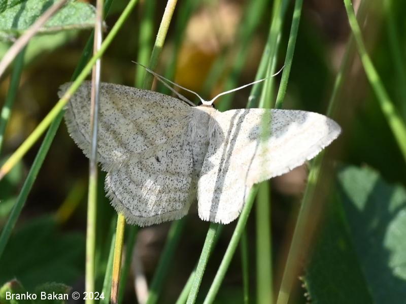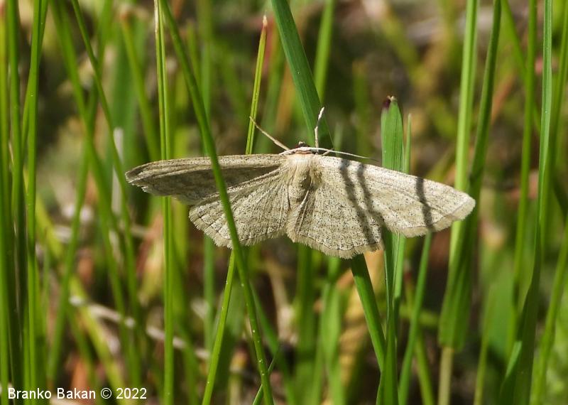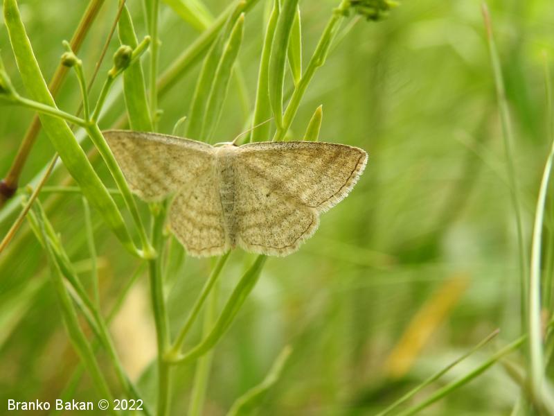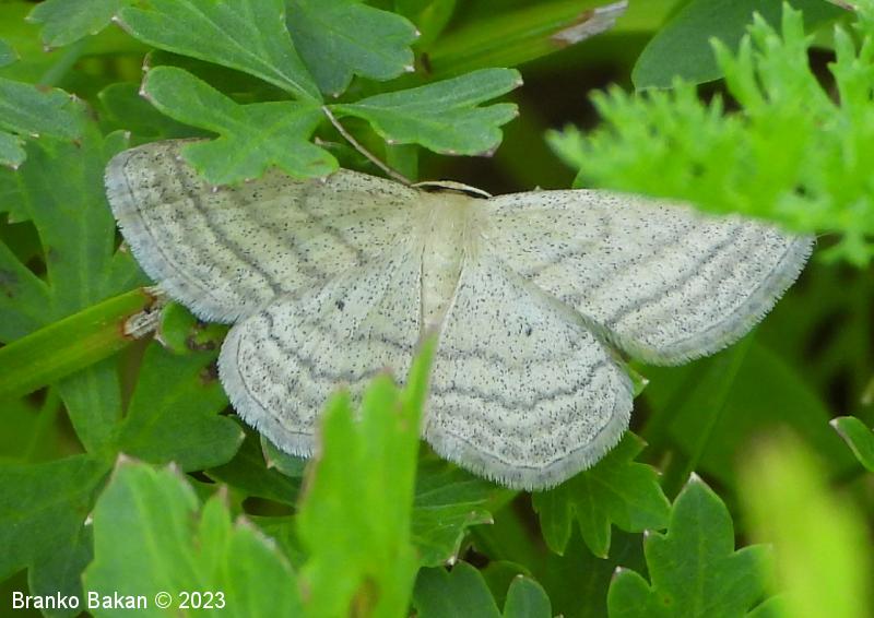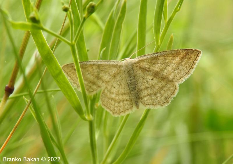 Odrasli osebki: nekoliko spominjajo na vrste iz rodu Idaea zaradi ravnega roba in zašiljenih konic na sprednjih krilih. Krila so z zgornje strani večinoma umazano bela, rahlo kremasta ali sivkastorjava, posejana z drobnimi temnimi črticami. Na sprednjih krilih je več prečnih, rahlo valovitih pasov, od katerih so trije submarginalni bolj zbližani (notranji pas od teh je pogosto kontrastnejši od vseh ostalih), lahko pa so šasovi tudi zabrisani. Na zadnjih krilih, ki so pri spodnjem robu rahlo prišiljena, se nahaja prav tako več valovitih pasov in temna pika, ki leži v subdiskalnem delu, za najbolj notranjim pasom (pika lahko tudi manjka). Poleg tipskih osebkov se pojavljajo svetli, kot tudi zelo temni osebki.