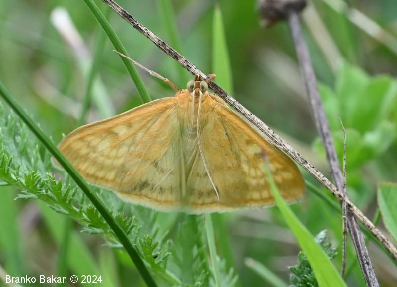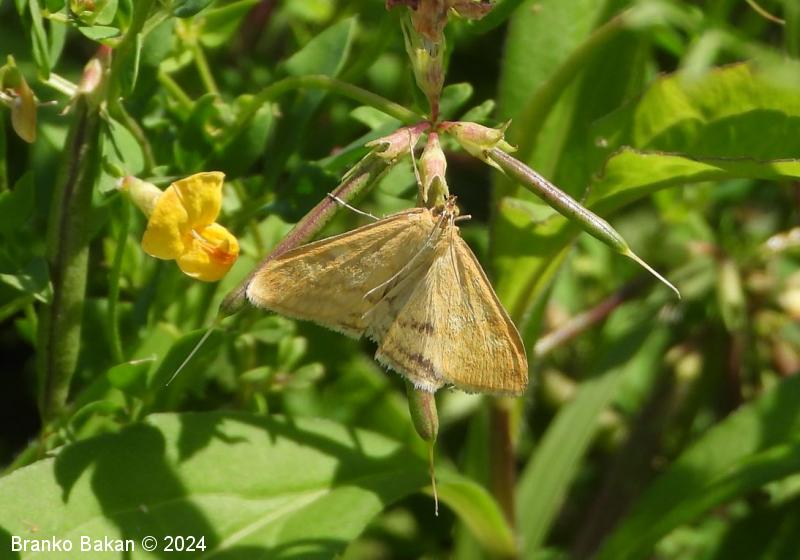 Podobne vrste (*neuveljavljeno ime): lakotina travniška vešča* (Mecyna lutealis) - rumena travniška vešča* (Mecyna flavalis) - prosena vešča (Ostrinia nubilalis).