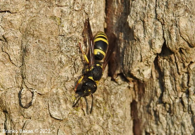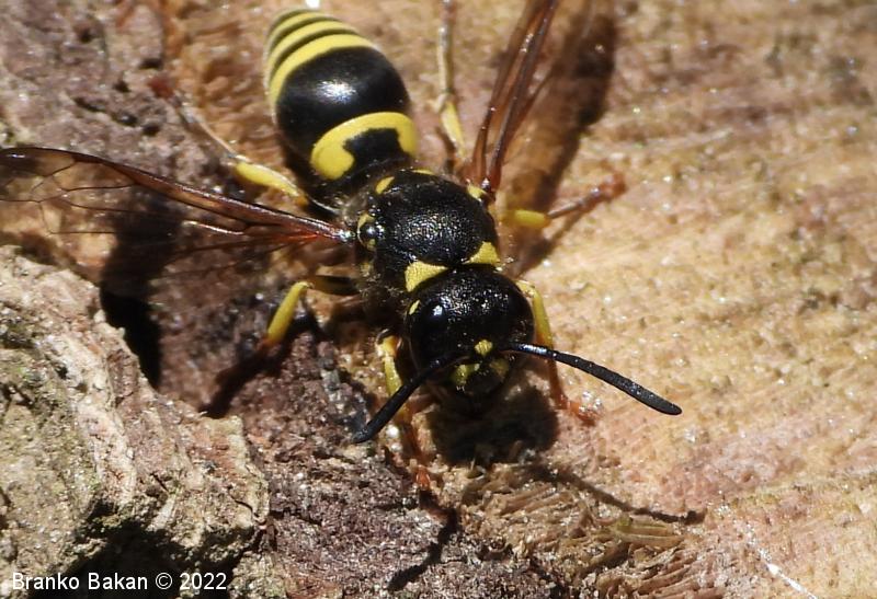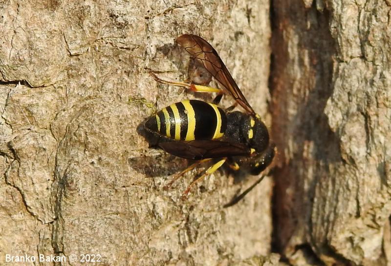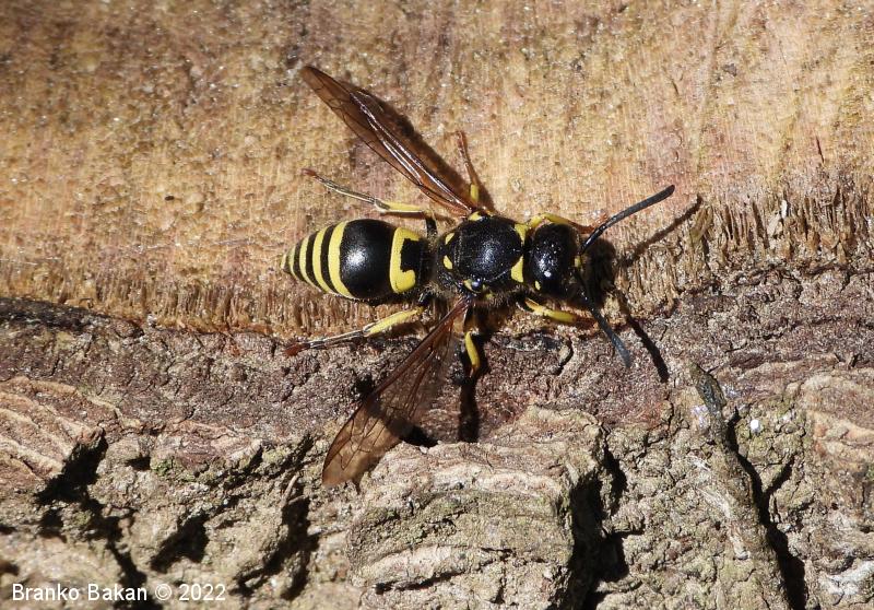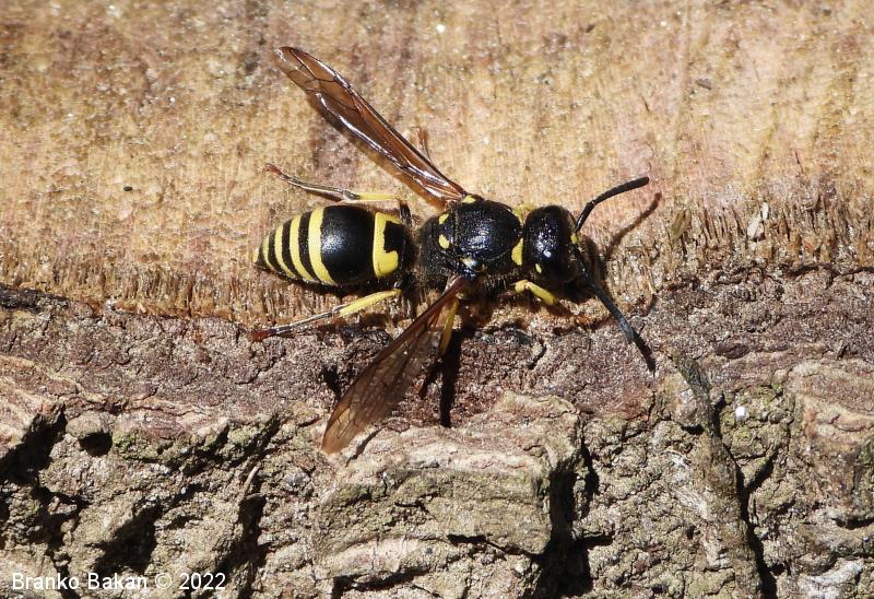 Samice: vitke, črne ose z rumenimi lisami in pasovi na zadku. Glava je črna, oči so velike  prav tako črne, v sprednjem delu se nad frontalno ploščo (clypeus) nahaja drobna rumena lisa, sam klipeus je večinoma rumen s črno osrednjo liso. Tipalnice so črne, po spodnji strani večinoma rumene, na vrhu rahlo betičaste in ravne. Oprsje je krepko, črno, večinoma drobno jamičasto, na sprednjem delu je večinoma krepko rumeno obrobljeno in ob straneh kratko trnato (značilnost roda!), na ščitku sta večinoma po dve rumeni lisi. Pritrjevališče kril je rumeno, rahlo izbočeno, s črno piko. Krila so večinoma temna, ozka. Zadek je v sprednjem delu nekoliko zožen in proti koncu koničast. Prvi segment (tergit) je bodisi rumeno pasast ali rumen z osrednjo črno liso, ostali segmenti so večinoma rumeno pasasto obrobljeni. Noge so rumene, stegenca so večinoma črna, stopalca so temnejša.