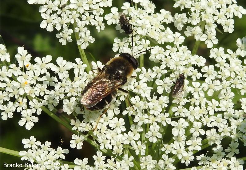 Obnašanje in razvoj: odrasli so aktivni v sončnih dneh nekje od maja do avgusta, večinoma letajo od cveta do cveta in ližejo nektar. Ličinke so podolgasto valjaste, sivkaste, z ozko cevasto podaljšanim zadkom in živijo v blatni, umazani vodi, kjer se hranijo z rastlinskim materialom (ličinke tega rodu so med seboj zelo podobne).