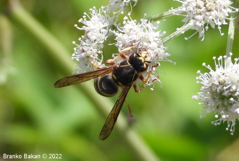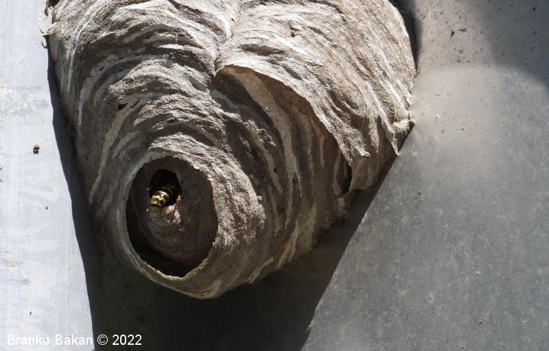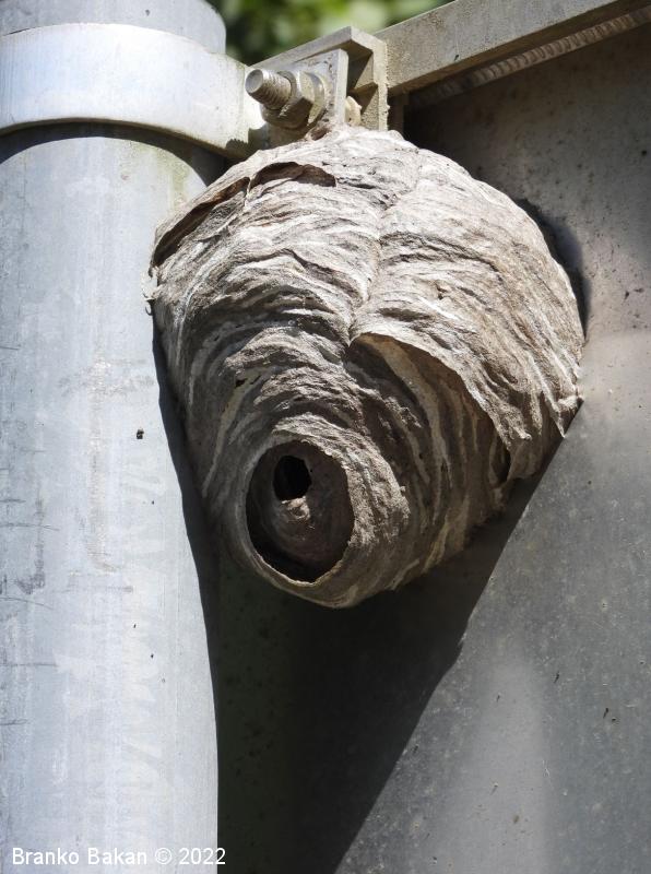 Obnašanje in razvoj: gre za socialno vrsto, ki gradi velika, papirnata gnezda in živi kolonijsko. Kolonija je kratkoživa, v povprečju nekje 3.5 mesece. V maju začne lanska matica graditi zametke gnezda iz celic, v katere znese posamična jajčeca, nekje od 10 do 15. Iz njih se izležejo prve delavke, za katere skrbi matica sama. Po 30. dneh odrastejo v prvo generacijo delavk, skrbijo za nov zarod in nadaljujejo z dograjevanjem celic v gnezdu (večinoma v nadstropjih), ki ga začnejo obdajati tudi s plastnatim, vrečastim zunanjim obodom (prepoznaven po svetlo-temnih valovitih pasovih). V juliju se razvijejo tudi mladi samci in mlade matice naslednje generacije. Gnezda so lahko velika in jih tvori tudi do 1000 celičnih enot. Prve matice se pojavijo v avgustu in se razkropijo naokrog do hibernacije (prezimovanja). Kolonija začne propadati, večina osebkov, z matico vred, pogine že pred jesenjo. Osebki so zelo agresivni v okolici gnezda, sicer pa se človeka izogibajo. Njihov pik je lahko precej boleč in lahko povzroči anafilektični šok pri alergičnih ljudeh! Ličinke in odrasli se hranijo z žuželkami, ki jih delavke uplenijo, pogosto pa se hranijo še z nektarjem, sadjem in rastlinskimi sokovi.