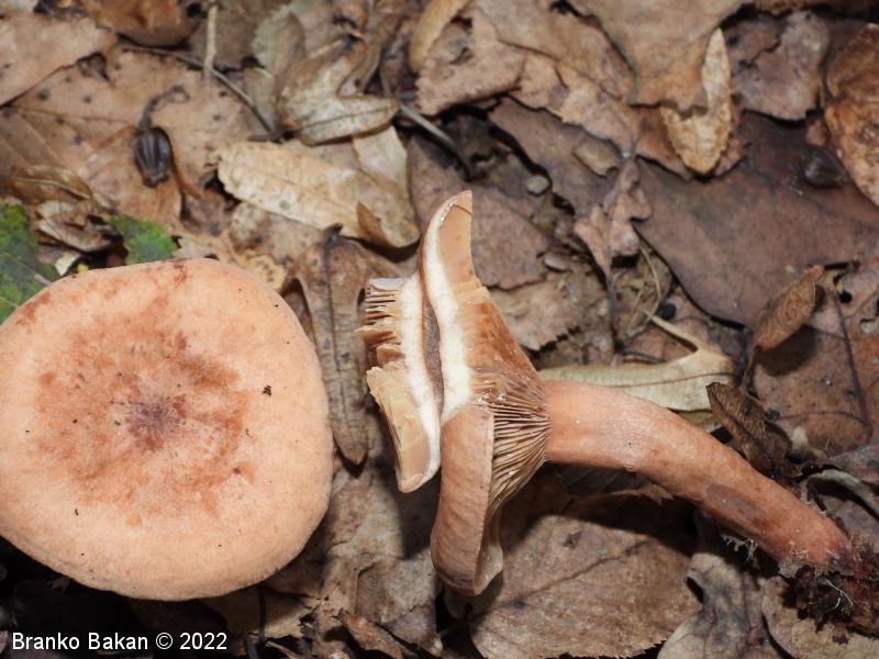 Opis: trosnjak je skoraj v celoti rumeno- do cimetastorjav, vsebuje bledo rumenkast mleček, ki na zraku . Klobuk je pladnjast, v sredini navadno usločen, a brez grbice, pri mladih gobah je rob spodvihan, kasneje neenakomerno valovit, večinoma z neizrazitimi temnejšimi kolobarji ali vsaj temnejšimi lisami. Spodnja stran klobuka (trosovnica) je gosto porasla z lističi, ki so najprej lisičjerjavi, kasneje postanejo enake barve kot klobuk (lahko so tudi zelo svetli, skoraj belkasti), pogosto se viličasto razcepijo, končajo se pri vrhu beta. Ta je valjast, pogosto ukrivljen, na poškodovanih mestih postane vinsko rdeče rjav, je čvrst, poln, sčasoma postane votel.