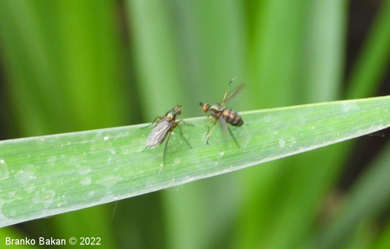 Posebnosti: odrasli se pojavljajo nekje od junija do avgusta, večinoma se prehranjujejo z uplenjenimi manjšimi žuželkami, kot so listne uši (Aphidoidea), skakači (Colembolla) in ličinke komarjev (Culicidae). Samci dvorijo samicam z razkazovanjem dolgih srednjih nog in poplesavanjem. Ličinke živijo v vlažnih tleh, kjer se hranijo z drobnimi nevretenčarji.