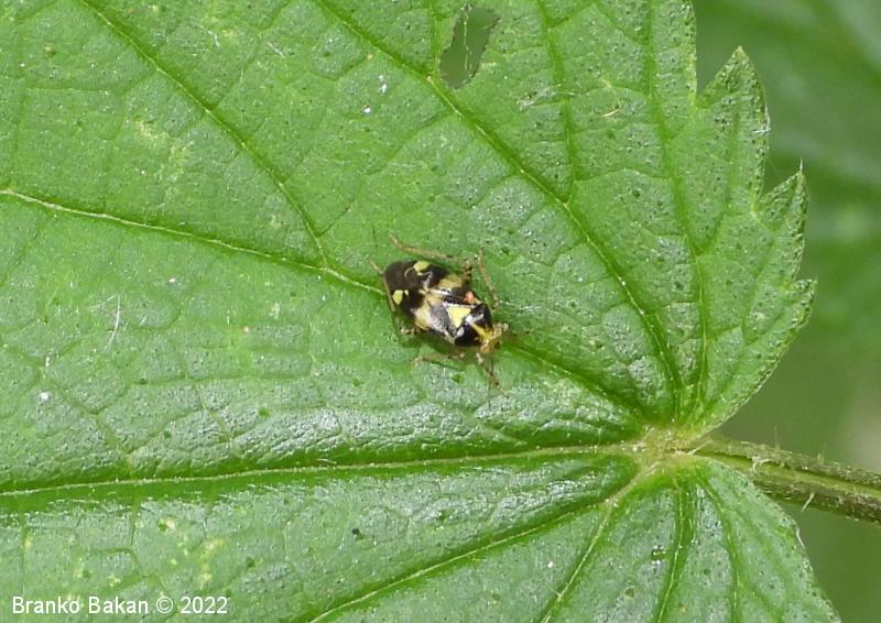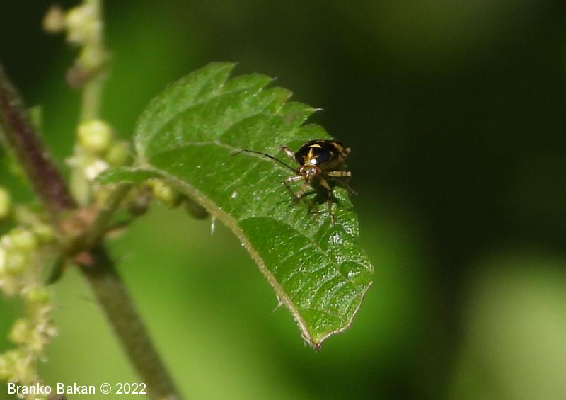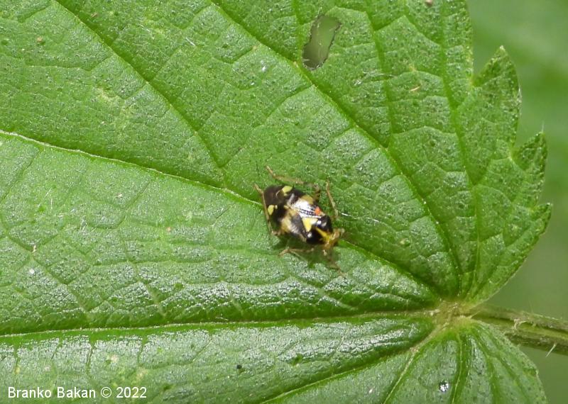 Opis: dokaj variabilna, a skoraj vedno z rumenim do kremastim ščitkom (scutellum) in dvema rumenima lisama na konicah pokrovk. Glava je trikotna, drobna, rumenkasta s temnejšimi pikami, tipalnice so nitaste, dolgočlenaste, bazalni členek je svetlejši, ostali so temni. Oprsje je trapezasto trikotno, črno- do rumenorjavo, občasno z izrazitejšim osrednjim "gredljem", ki je pogosto rumen ali rjavkast. Pokrovke so temno- do rumenorjave, v osrednjem delu z rumenkastim, zabrisanim pasom, konice so pogosto kontrastno rumene ali rjavkaste. Krila so temna, prav tako zadek. Noge so vitke, rumenkaste s črnimi obročki in lisami.