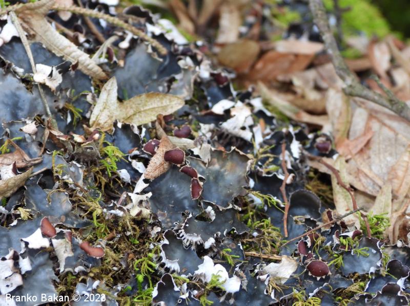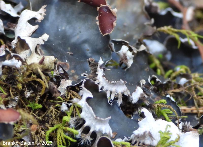 Posebnosti: vrsta uspeva večinoma na mahovnih mestih na razpadajočih deblih ali na tleh, tudi na skalah in je dober pokazatelj starih, dobro ohranjenih gozdov. Fotobiont je modrozelena bakterija Nostoc.